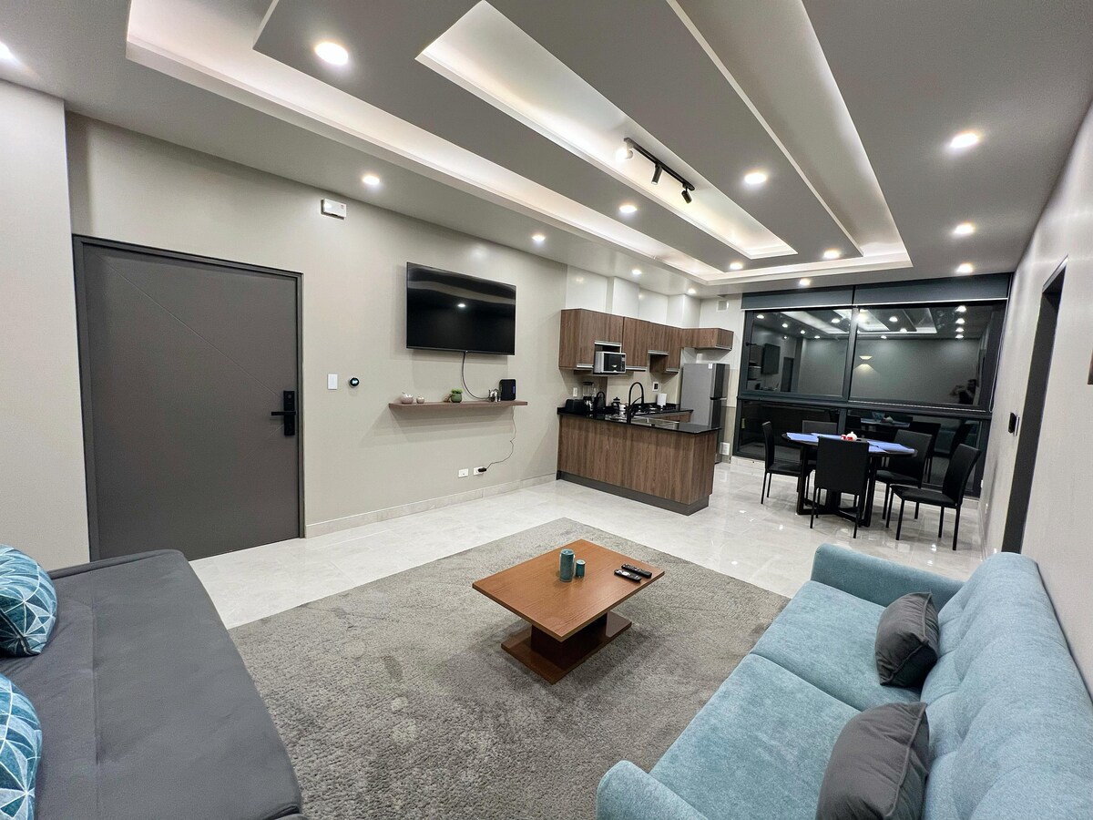Sizi hər cür milli və beynəlxalq kulinariya təcrübələri təklif edən restoranlarla əhatə olunmuş sakit istirahət məkanı olan San Migelin mərkəzindəki mənzilimizdə qarşılamaqdan məmnun olarıq. Tətil və ya işgüzar qonaqlama üçün idealdır. 100 kvadratmetrlik bu mənzildə iki yataq otağı və iki hamam otağı var. Mənzil çox istidir, bu isə soyuq iqlimli şəhər olan La-Pasda çox vacibdir.