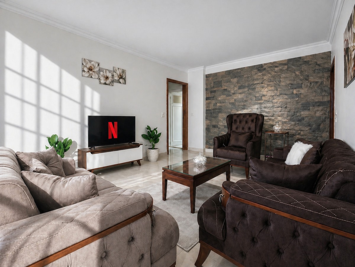 Qahirənin rahatlığını xaos olmadan axtarırsınız? Geniş məkan, sakitlik və heç bir narahatlıq istəməyən ailələr üçün Misir-Kanada səyahətçilərinin mülkiyyəti və idarəçiliyi altında olan, lazım olduqda kömək edəcək etibarlı yerli ortaq ev sahibinin olduğu məkandır. Böyük ailələr üçün idealdır! ✅ 3 yataq otağı + 2 qonaq otağı ✅ Maadi = Ailə Yönümlü + Gəzinti üçün Münasib ✅ Tam Mətbəx + Yemək Məkanı ✅ Cakuzi vannası – Uzun günlər ərzində araşdırmalardan sonra dincəlin ✅ Yaşıllıq mənzərəsi olan sakit balkon Gündəlik işlər yoxdur. Stress yoxdur. Bütün ailə üçün uyğun olan rahat bir məkan.