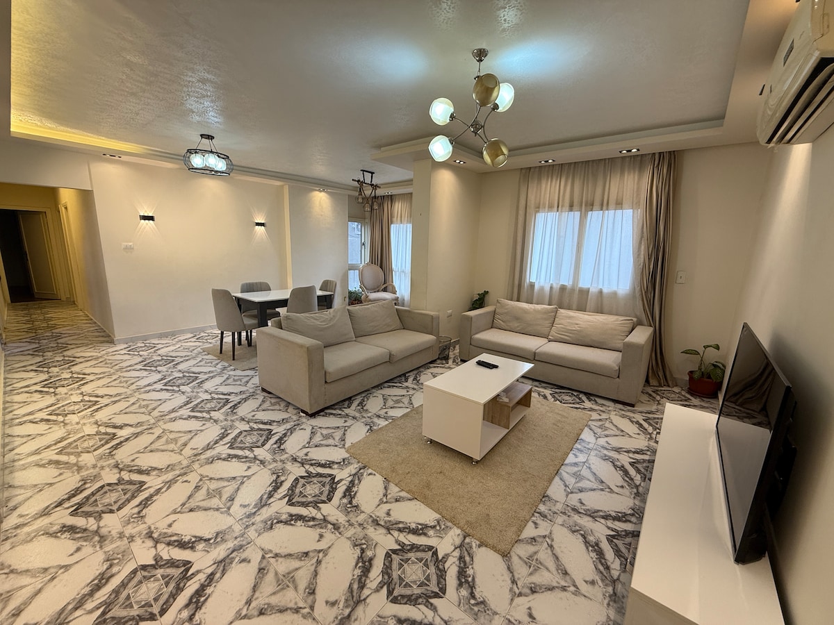 انعم بالهدوء والاسترخاء بصحبة عائلتك في هذا المسكن الهادئ. قريب جدا من المتحف الكبير والاهرامات قريب جدا من مطار القاهرة الدولي علب بعد دقائق هايبر ماركت مع كثيرا من البرندات العالميه