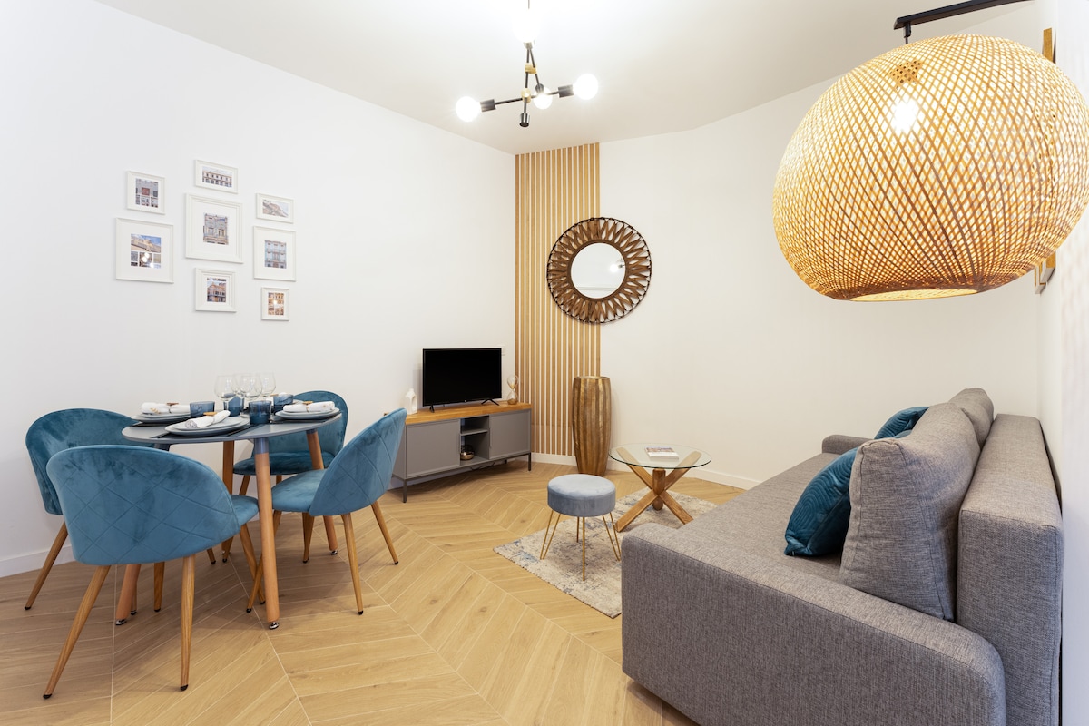Bright, fresh and comfortable 3 bedrooms/2 bathrooms apartment, located at the Beach, in El Cabanyal neighborhood, at 3 min (200 metres) walking from the beach and local restaurants. Located 3 min. walking distance from Mediterrani Metro stop or 5 min. Marina Reial Joan Carles I Metro stop (15 min. journey time to the Old Town). Ideal for business trips, who want to enjoy the Beach area in a recently renovated flat with Mediterranean style.