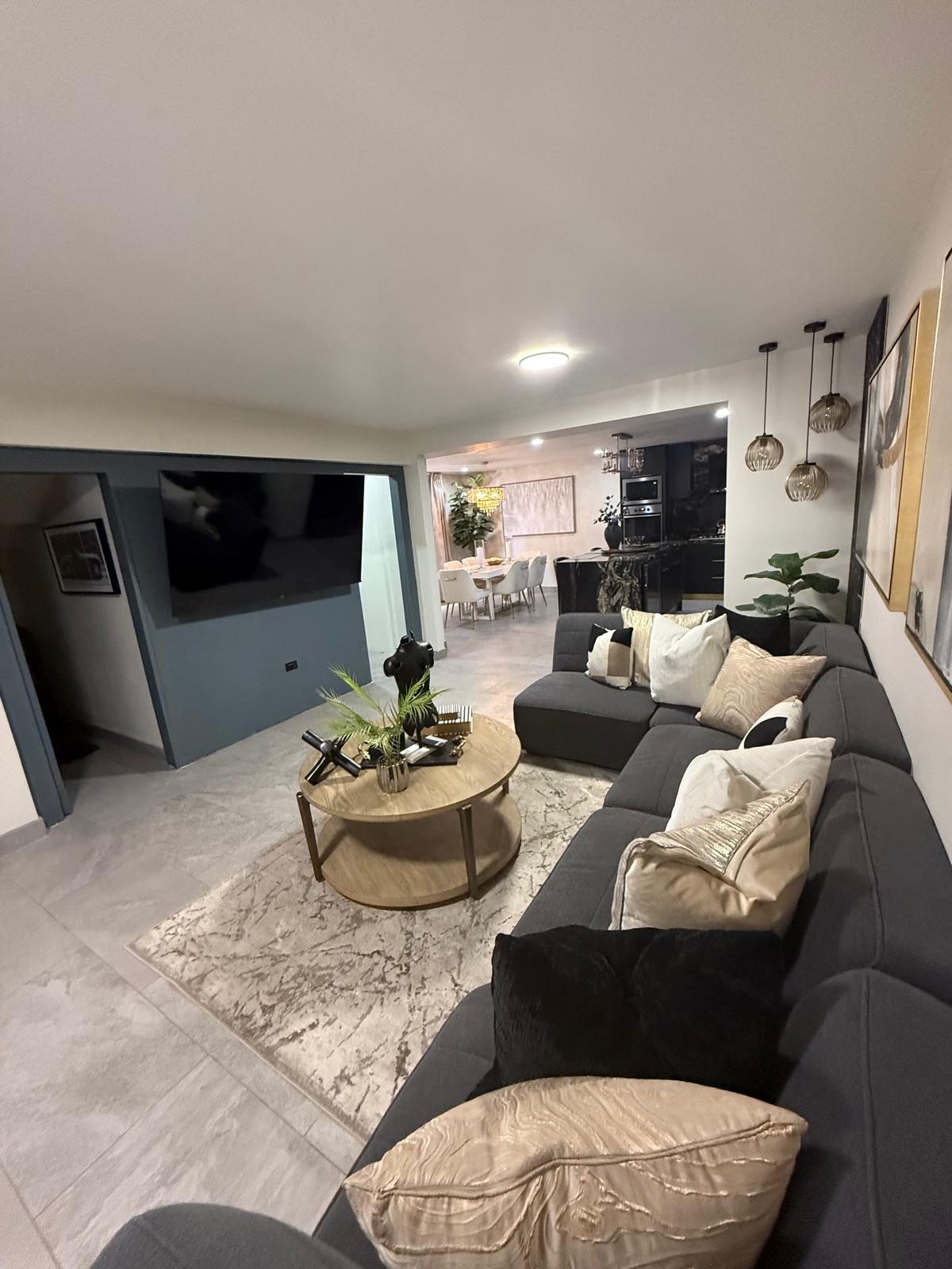 - Modern 2-bedroom apartment on the 5th floor, minutes from Plaza Cachanilla - Elevator access for easy convenience - Self check-in with smart keypad - Parking for 2 vehicles - AC throughout the apartment - Fully equipped kitchen, dining area, and laundry space - 75” 4K Smart TV with Netflix, Disney+, Amazon Prime, and HBO - Communal terrace on the 9th floor with business center, grills, and lounge area - Social Club access: swimming pool, gym, and game room - We issue MX invoices (Facturamos)