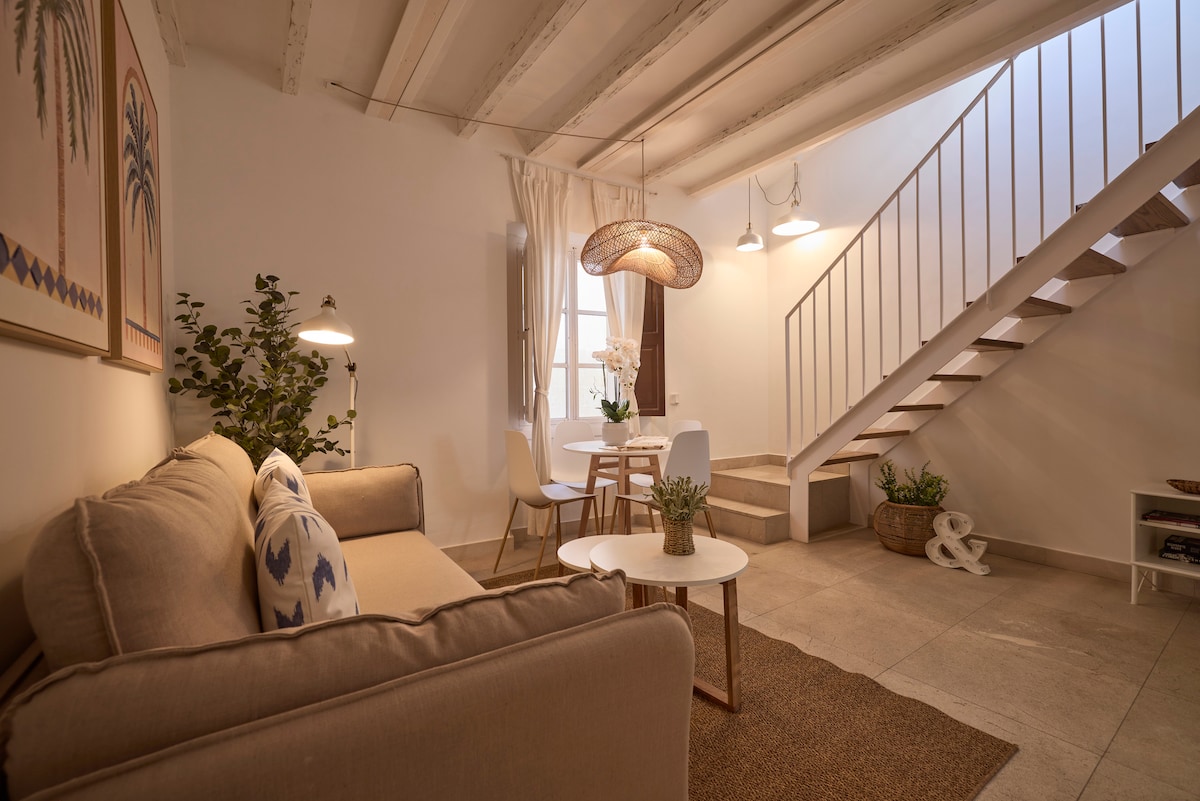 Palmanın mərkəzində və küçə mənzərəli 2 nəfər üçün gözəl loft. Burada 2 nəfərlik çarpayı 90sm x 200sm, divan, duş və liftli vanna otağı var. Bundan əlavə, mətbəx, mikrodalğalı soba, Nespresso qəhvə maşını, mini soyuducu, saç feni, pulsuz Wi-Fi, televizor, döşəkağılar, dəsmallar, ütü, yemək masası, kondisioner və istilik sistemi ilə təchiz olunub. Qonaqların hamamı olan böyük kommunal terrasa və qonaqlar üçün paltaryuyan/quruducuya girişi var.