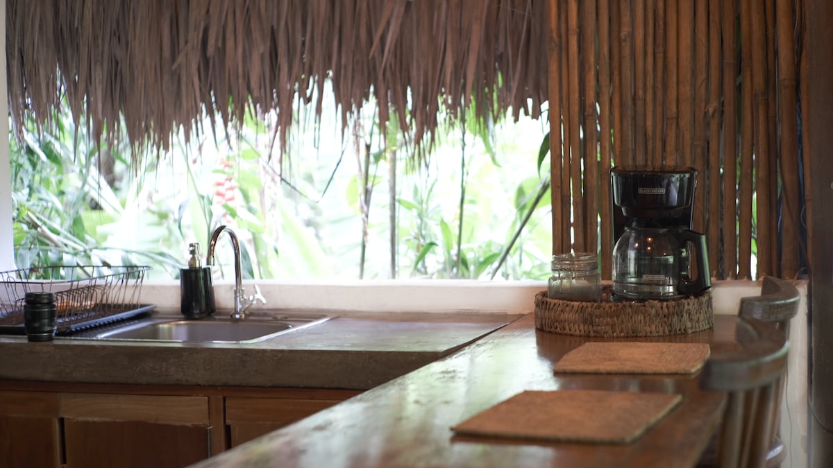 Relájate en esta escapada romántica, única y llena de paz y tranquilidad a nuestra tiny house rodeada de un hermoso bosque de cipreses, por la noche puedes calentarte en el área de fogata y en días de cielo despejado ver un hermoso cielo estrellado Realiza una caminata 10 min por los senderos del bosque hasta el rio, disfruta de la energía y paz del lugar. No necesitas 4x4, solo un buen motor para subir hasta la zona alta de chalatenango, la propiedad se encuentra a solo 5 min de Río Chiquito.