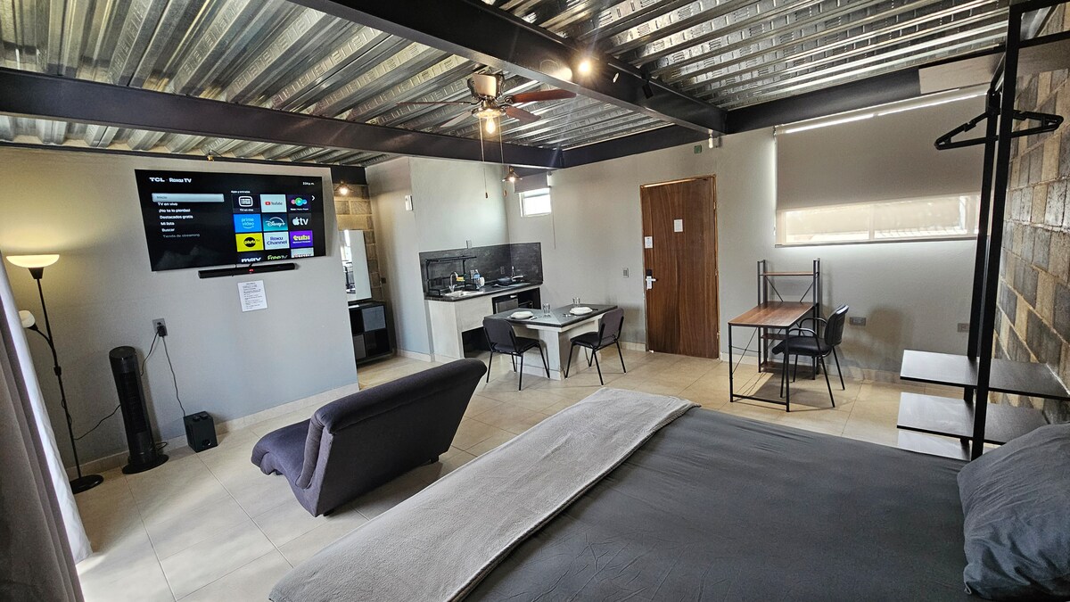 Üst mərtəbədəki loft mənzil, terras, panoramik mənzərə, daha çox məxfilik - Girişdə ayrıca parkinq - Çox rahat döşəkli çarpayı - Divan divan və 65"Səs çubuğu olan ağıllı televizor -Qril, Soyuducu, Mikrodalğalı soba ilə mətbəx yemək otağı -Access Independiente (istədiyiniz vaxt daxil olun və çıxış edin) -Quiet, təhlükəsiz və kommersiya ərazisi. Nə lazımdırsa, onu yaxınlıqda tapa bilərsiniz -Xarici xidmət, hər zaman xidmətinizdəyik Turizm, İşgüzar Səyahət və ya Cütlüklər üçün ideal mövqe