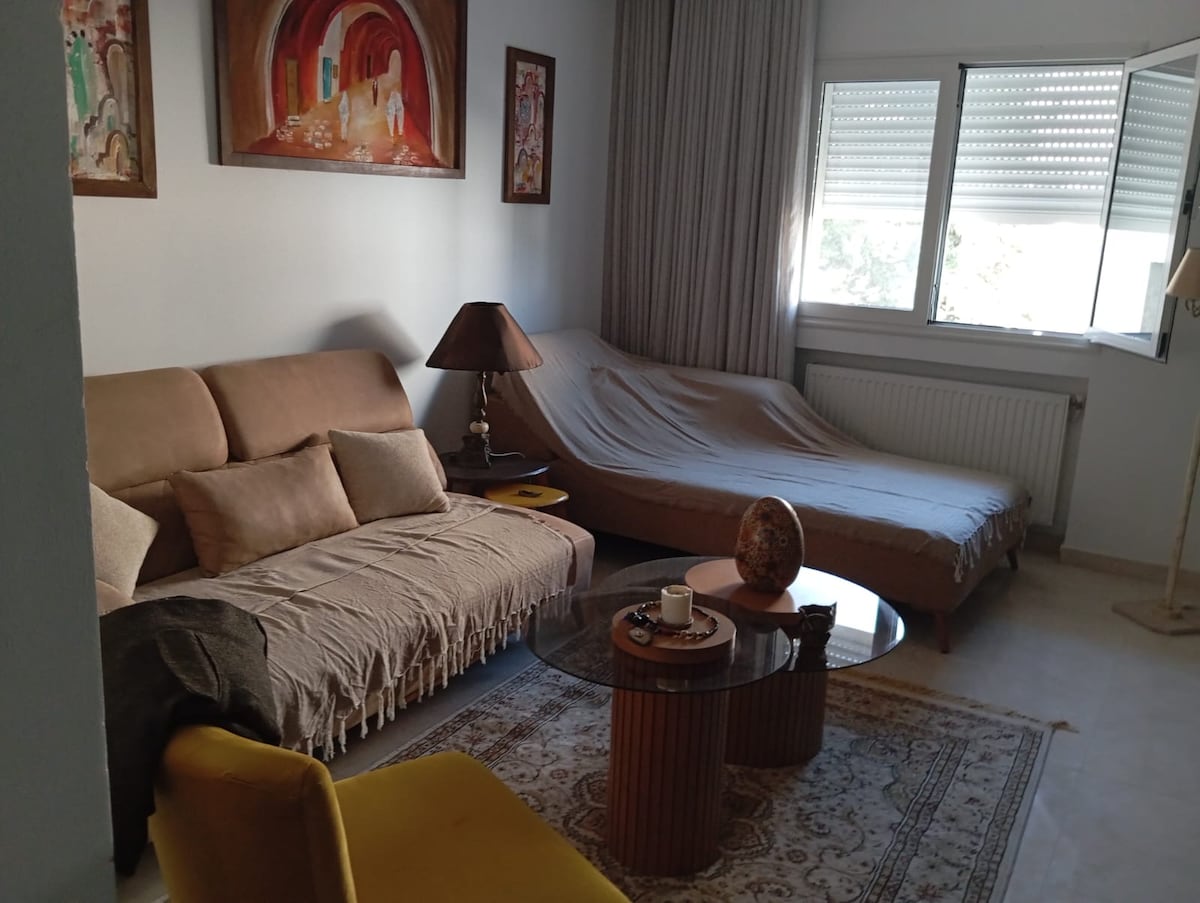 Agréable appartement bien situé dans un charmant quartier résidentiel,joliment meublé et bien équipé, à 10 minutes de I’aéroport L'appartement se compose d'une cuisine bien équipée et de tout le nécessaire pour cuisiner et faire de bons petits plats maison, deux chambres complètent ce logement, dont l’une avec suite. l’appartement possède une vue dégagée et agréable sur grand Tunis et située au 5 ème étage avec double ascenseurs. nous somme ravis de vous accueillir avec notre co-hote Mehdi