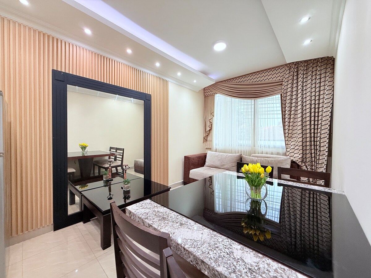 Biznes, turizm və ya ailəsini ziyarət etmək üçün şəhərimizə gələn insanlar üçün uyğun olan bu gözəl, dəbli, geniş məkana xoş gəlmisiniz. Mənzil 1-ci mərtəbədə yeni tikilmiş binada yerləşir, qonaqlamanızı daha xoş və rahat etmək üçün bütün yataq otaqlarında kondisioner var.