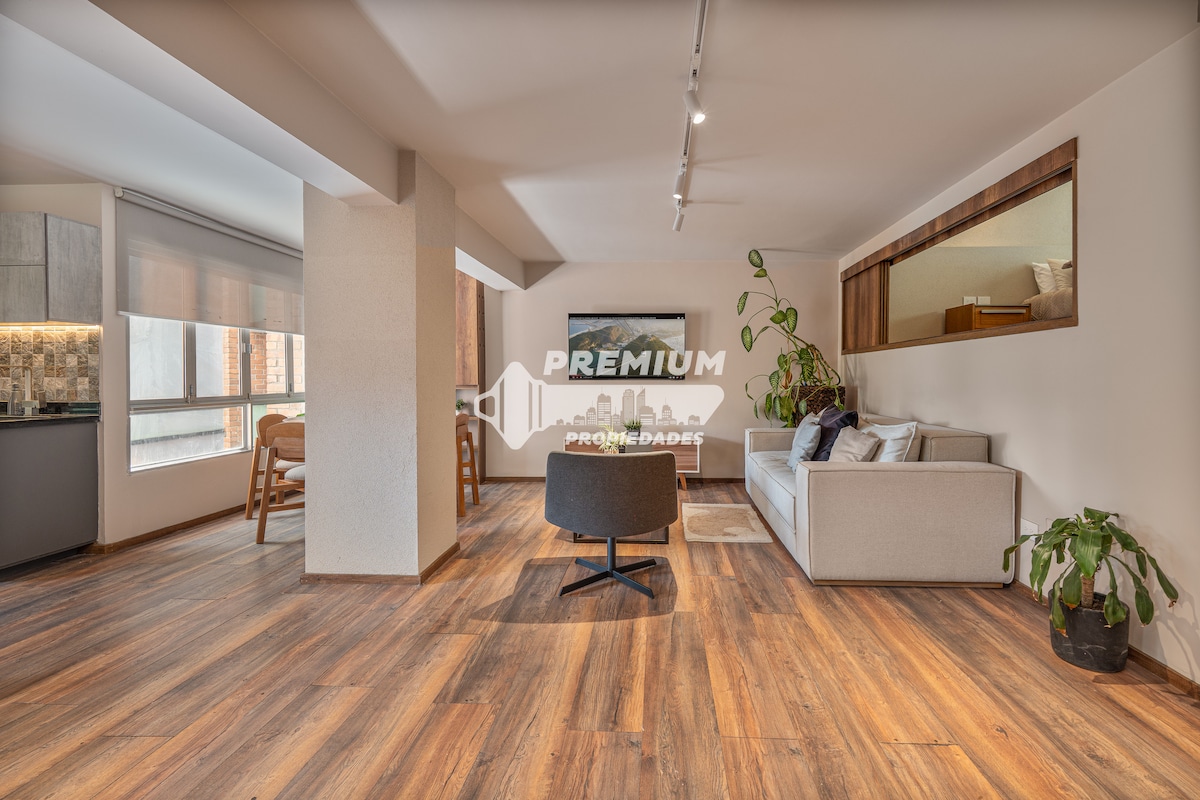 Provenza və Parque Lleras-a yaxın, sakit, lakin rahat yerdə yerləşən rahat və dəbli 50 kvadratmetrlik studiya mənzilimizə xoş gəlmisiniz. Bu geniş studiyada 1,5 vanna otağı, rahat kraliça ölçülü çarpayı, yüksək sürətli 300mbps internet və xüsusi iş masası var. 15-ci mərtəbədən valehedici mənzərələri olan bu sakit istirahət məkanı mükəmməldir. 24/7 Giriş və təhlükəsizlik Binada hovuz və idman zalı * Cinsi turizmə qarşı sıfır dözümlülük. * Ev qaydalarımıza baxın.