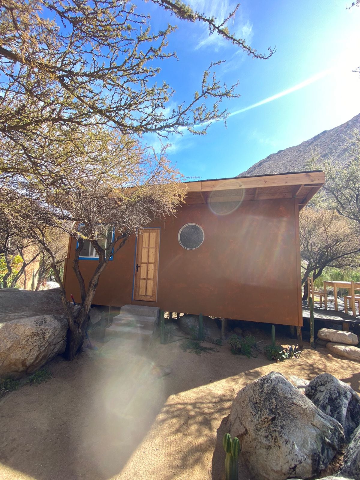 Rustica cabaña de un ambiente con baño en suite en Pisco Elqui, se encuentra a solo dos cuadras (600 metros en subida) de la plaza del pueblo. Cuenta con una cama matrimonial, frigobar, cocina a gas y utensilios de cocina para dos personas y baño privado en suite. Disfruta del hermoso jardín con arrollo, quincho y hamaca y descansa con el encanto del valle de elqui. Te esperamos! :-) Favor tener en cuenta que se requiere mínimo un día de anticipación entre la reserva y el día de llegada.