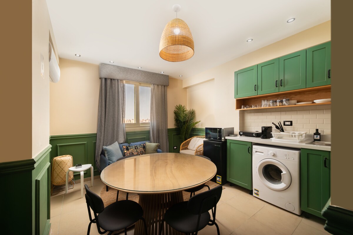 Qədim möcüzələrin müasir üslubla asanlıqla birləşdiyi məkan olan Piramidaların yaxınlığındakı gizləndiyiniz yeri kəşf edin. Otağınızdan möhtəşəm mənzərəni seyr edin və ümumi rahatlıqda Giza sehrindən zövq alın. Günəş işığı saçan, düşünülmüş şəkildə hazırlanmış bu studiya Misirin ən məşhur təyinat nöqtəsini araşdırmaq üçün giriş qapınızdır