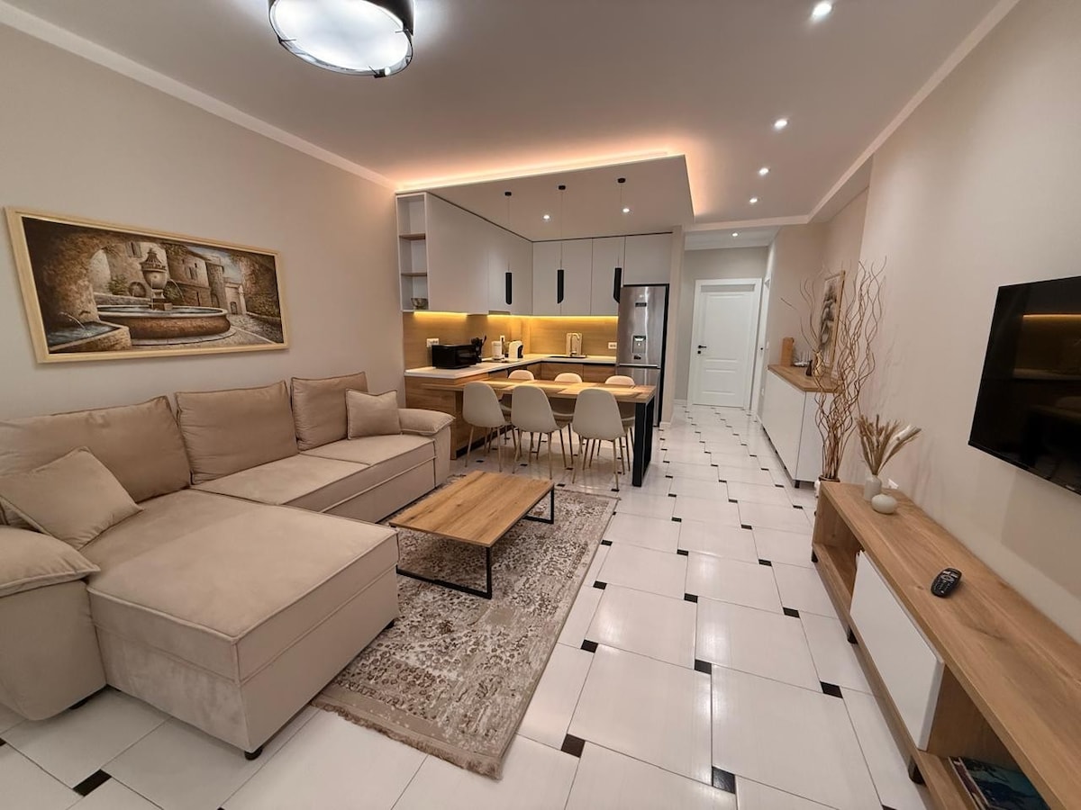 Newly furnished special condo in Central Tirana (5 min walk from Skanderbeg Square). Enjoy comfortably a calm modern relaxing space while visiting Apartment on the 4th floor and there is no elevator so please consider. We can help with bags. Pool, Gym, Sauna extra 2 min walk at Black Diamond hotel The furniture and design aimed for maximum comfort The area is safe and quiet 8 min walking distance to the center and the main public transportation and shuttles to airport or any main location