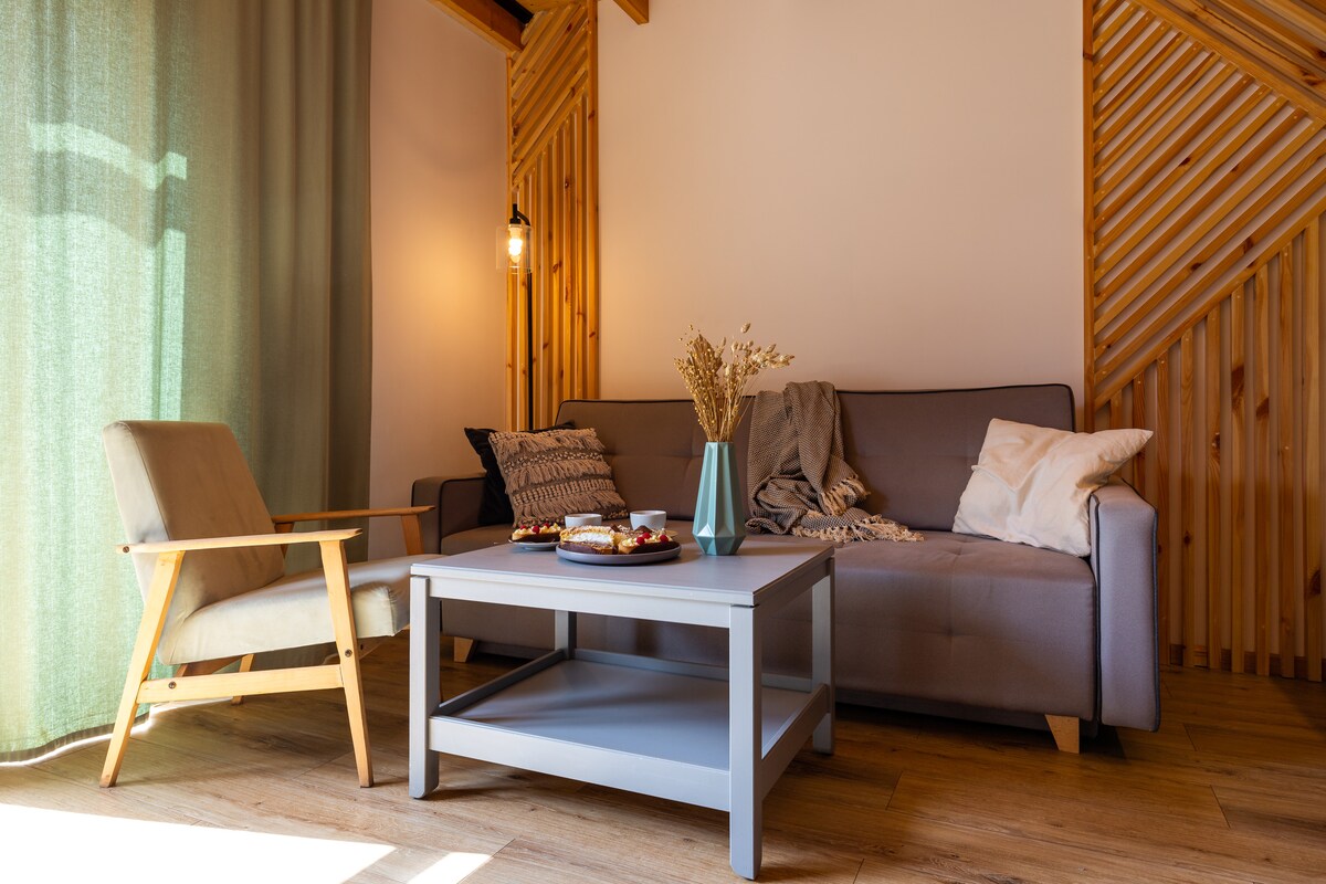 Bu, Aniya və Hubertdir. Həyatda sadəliyə və rahatlığa dəyər veririk və bu mənzili bunu nəzərə alaraq hazırlamışıq. Bu sakit, dəbli məkanda dincəlin və dincəlin. Qurğunun atmosfer tərtibatı 2-3 böyük və ya uşaqlı ailə üçün idealdır. Kubica Apartments ayrıca səmimi yataq otağı sahəsi və tam təchiz olunmuş balaca mətbəxi olan qonaq otağı olan geniş bir məkandır.