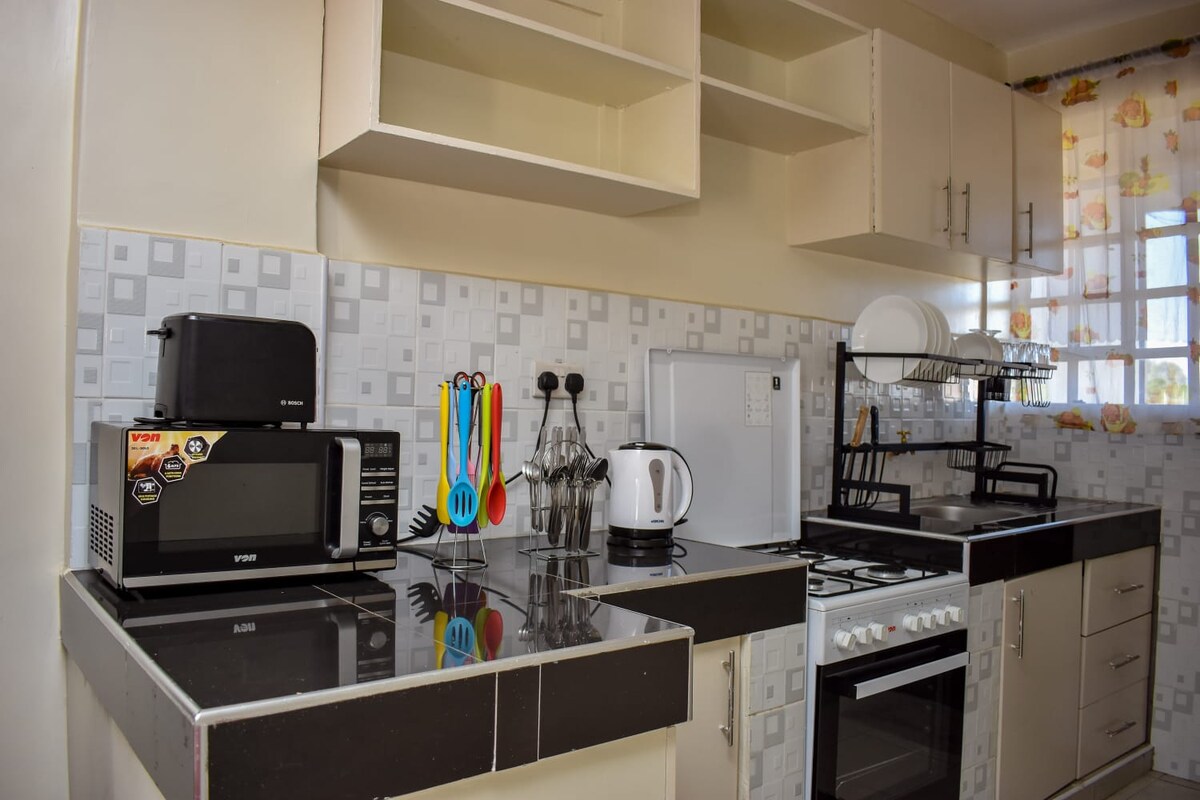 A 3 bedroom cozy suite in a serene neighborhood that can accommodate up to 6 people. Bring the whole family to this great place where we have; 1) kids playground 2) swimming pool 3) Club-House 4) Gym Nearby amenities include; 1) Rupa Mall and Zion Mall - 9 minute drive 2) Eldoret Airport is a 10 minute drive 3) Entertainment joints nearby (TMT, Tamasha, Relax Inn) 4) Hospitals (MTRH, Reale, Eldoret & Mediheal ) 5) Outdoor & Hotels (Lobo Village - Family friendly with all Kids activities)