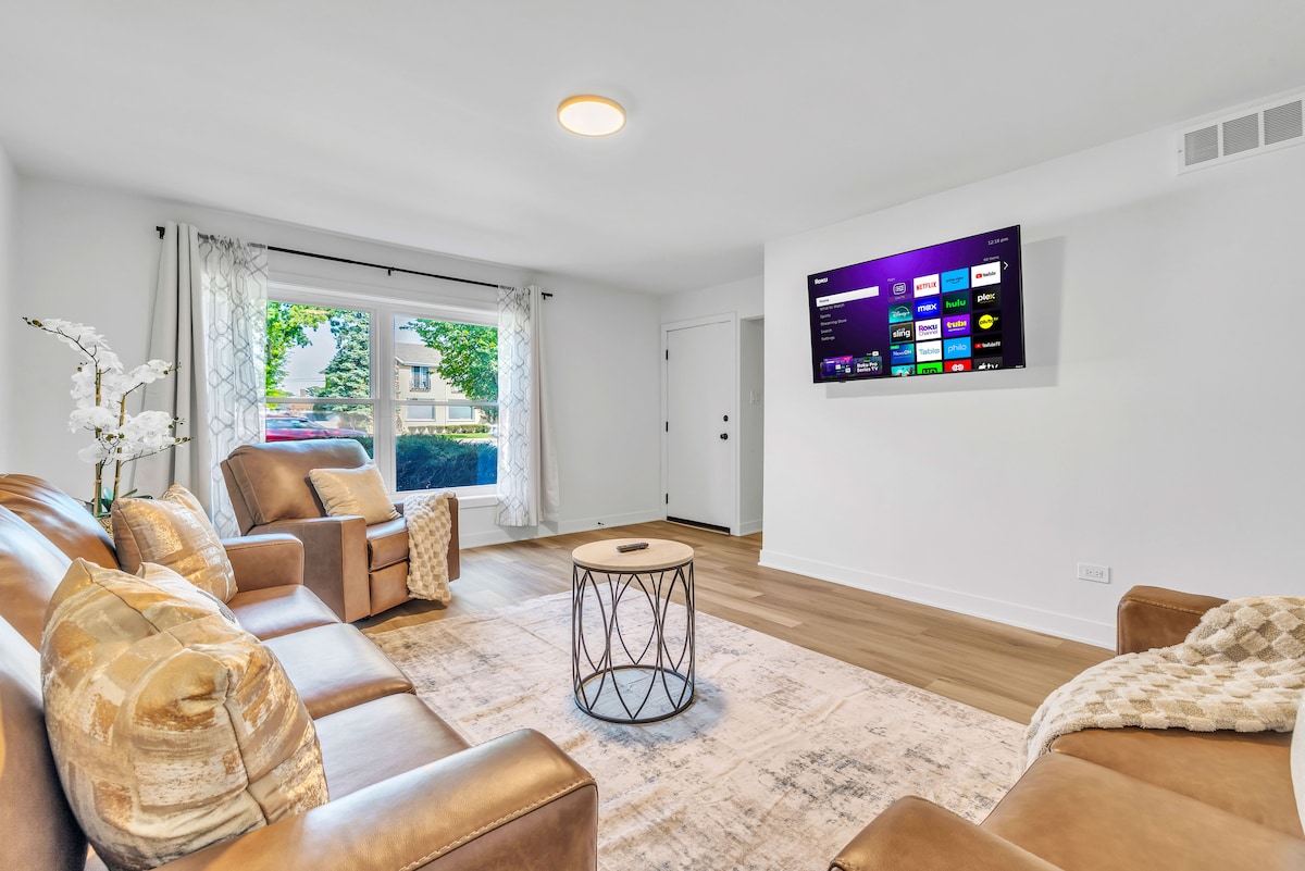 Forest Parkın mərkəzində yerləşən bu yeni təmir edilmiş rahat özəl 1-ci mərtəbə mənzili hər qonaqlamadan əvvəl tamamilə təmizlənir və dezinfeksiya edilir. Qəhvə dükanları, restoranlar və alış-veriş yerlərinin olduğu Medison küçəsindən cəmi bir neçə addımlıq məsafədədir. Qısa bir gəzinti ilə Ouk Park şəhər mərkəzinə də çata bilərsiniz. Rahat mövqedə yerləşir, Çikaqo şəhər mərkəzinə və O'Hare hava limanına cəmi 15 dəqiqə məsafədədir, nəqliyyat imkanları da rahatdır. Bu geniş məkan cütlüklər, işgüzar səyahətçilər, tək qonaqlar və ailələr üçün mükəmməldir.