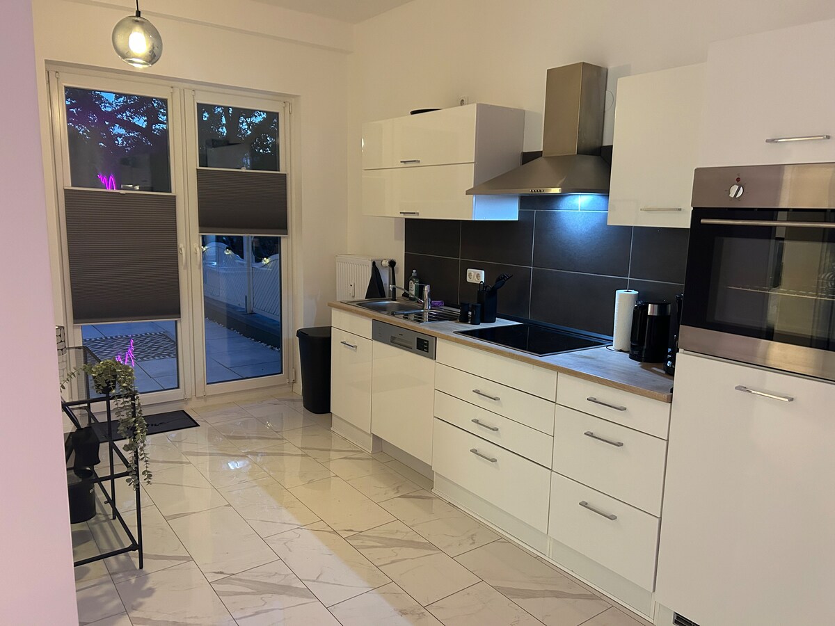 Müasir, mərkəzi və geniş: 110 kvadratmetrlik bu dəbli 4 otaqlı mənzildə 9 nəfərə qədər qonaq yerləşə bilər. Elmshorn qatar stansiyasına piyada bir dəqiqəyə çatmaq olar - bu, Hamburqa ekskursiyalar üçün mükəmməldir. Böyük terras, Netflix, tam təchiz olunmuş mətbəx, zərif mərmər döşəmə. Ailələr, qruplar və ya işgüzar səyahətçilər üçün idealdır. Yaxınlıqda alış-veriş və köşk var. Yaxınlıqda parkinq yeri var.