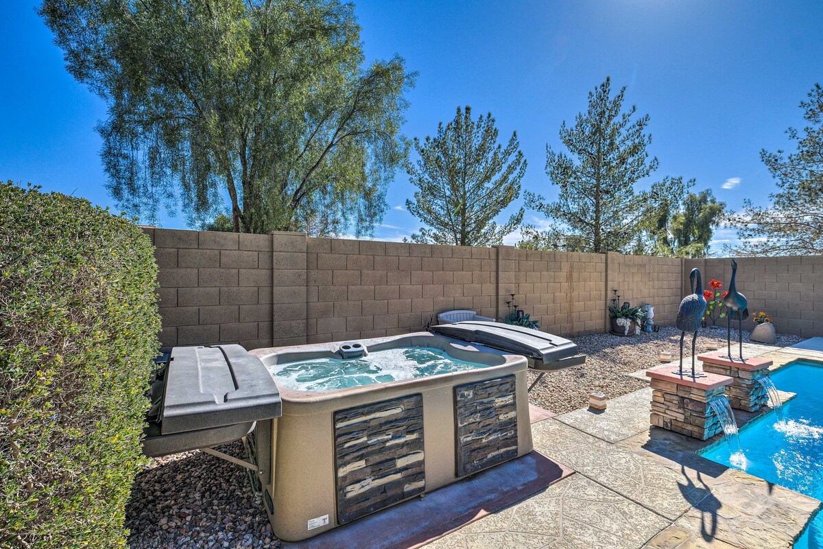 Bütün heyəti ABŞ-ın Kasa Qrande şəhərinin mərkəzində yerləşən bu gözəl 5 otaqlı, 2 otaqlı evə gətirin. Ailəniz, dostlarınız və ya iş yoldaşlarınızla bir araya gəlməyinizdən asılı olmayaraq, bu səhra istirahət məkanı sizə lazım olan məkan, rahatlıq və imkanlar təklif edir — tam təchiz olunmuş ofis, buxarı və qril olan böyük arxa həyət və 12 nəfərə qədər qonaq üçün otaq. Üstəlik, Finiks metrosu ərazisindən cəmi 40 dəqiqəlik məsafədəsiniz, günlük səfərlər və hava limanına giriş imkanı əldə edirsiniz.