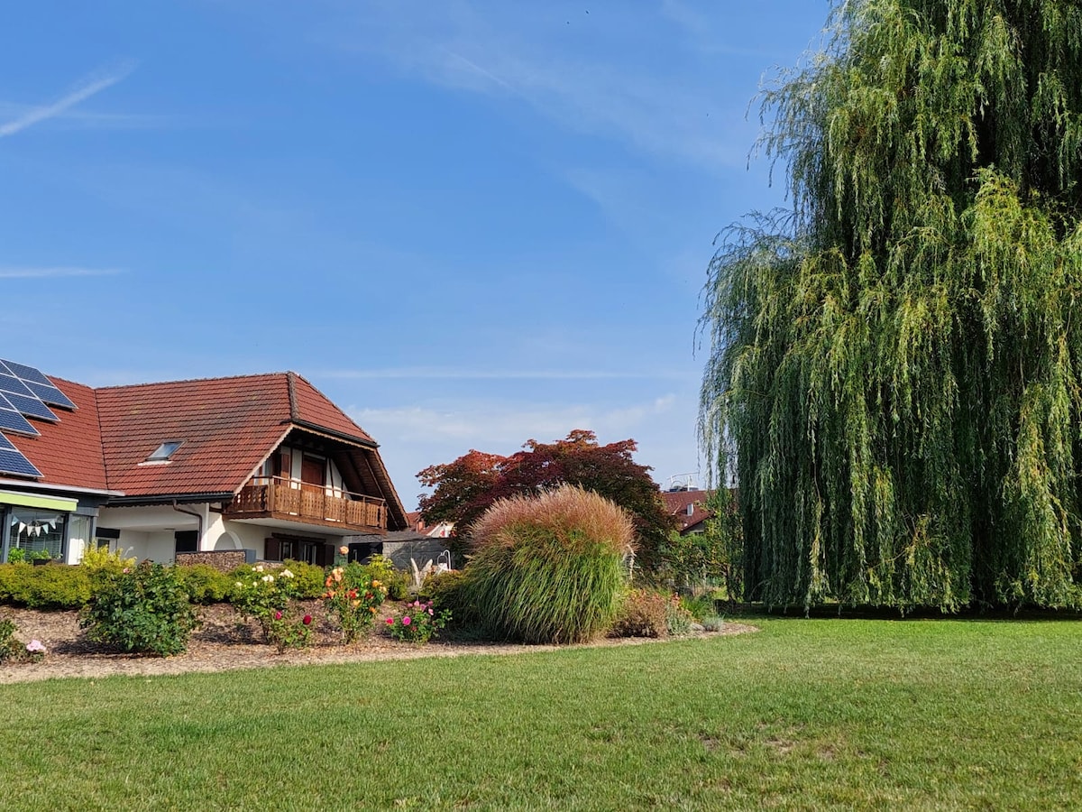 Nimm die ganze Familie mit in diese tolle Unterkunft mit viel Platz und einem grossen Gartenbereich. Das Haus direkt am Wald gelegen mit direktem Zugang zum Fluss verweilt zum spielen, bräteln und baden. Die Wohnung ist hell und freundlich, grosszügig und stilvoll eingerichtet. Sie verfügt über eine komplett eingerichtete Küche, grossem Esstisch, offenem Wohnbereich. Kinderbett sowie Spielküche, Hochstuhl und diverse Spiele stehen zur Verfügung.