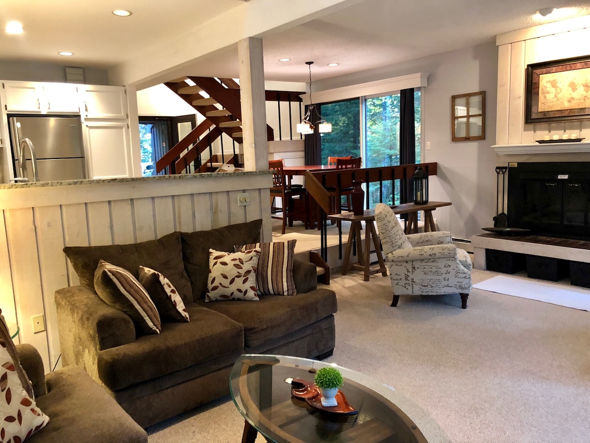 If you are looking for a way to enjoy Northern Michigan’s outdoor lifestyle all year, come to Trout Creek! Located between the towns of Petoskey and Harbor Springs, this 2 Bed/Bath plus loft condo is nestled in a private wooded setting and sleeps 9 people. (Max 8 adults). Whether you are on the balcony among the treetops, or keeping cozy in front of the fireplace, spend your time making memories amongst the four-season beauty and recreation of Northern Michigan.