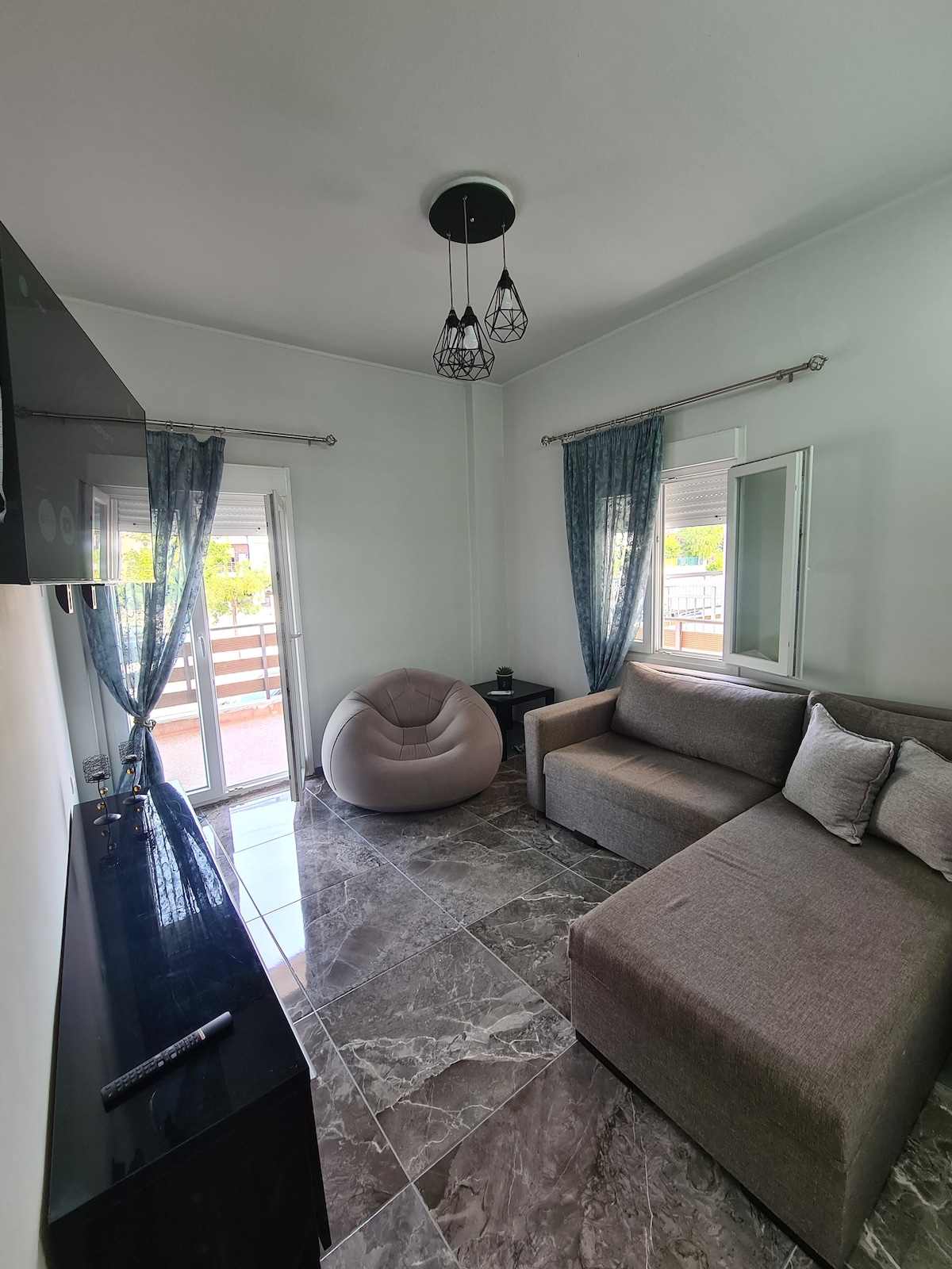 Hello, this apartment is located in the centre of New Michaniona. Next to the apartment is our family’s sweet shop where you can get discounts and enjoy our Greek cuisine. Also the apartment is located near bars and taverns. You have easy access to a big variety of seasides and bus stops. Last but not least it is a peaceful apartment and our family is happy to help you have fun during your holidays.