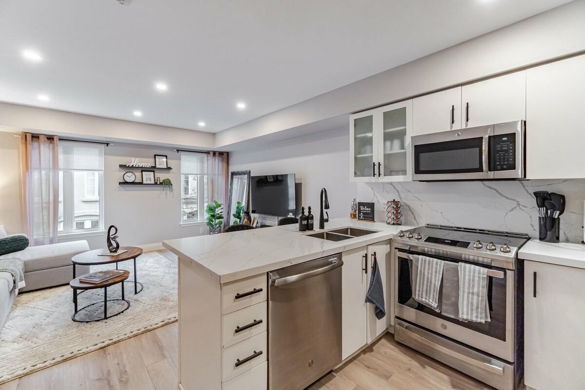 Welcome to your urban sanctuary in the heart of Liberty Village—a 3-level stacked townhouse that's been transformed into a modern haven for both short-term excitement and long-term comfort! Versatile Living: This townhouse adapts to your every need. Enjoy your private rooftop terrace, perfect for entertaining or soaking in the city. Need a dedicated workspace? A spacious den is ready for your creative endeavors. This townhouse is your canvas for unforgettable experiences.