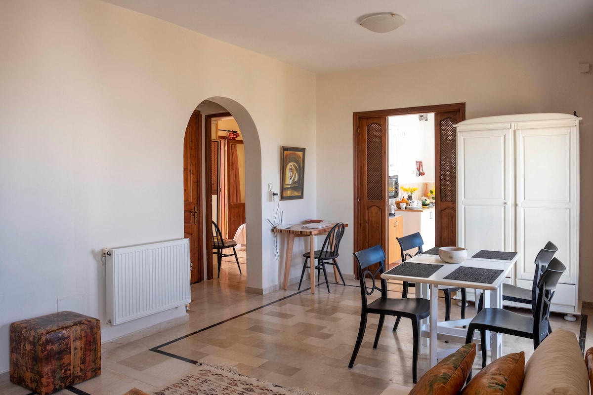 Mənzil villanın 1-ci mərtəbəsində yerləşir, ayrıca girişi və 4 şəxsi terrası var. Dənizə və dağlara baxış. MƏHDUDİYYƏTLƏR: Məhəccərlərdəki böyük boşluqlar səbəbindən 10 yaşdan kiçik uşaqlar qəbul edilmir. Mənzil böyük bağla əhatə olunub. Çimərliyə məsafə: zeytun ağacları arasından təxminən 10 dəqiqəlik piyada yol. 15 dəqiqəlik piyada gəzintidən sonra Herqlanın mərkəzində olacaqsınız. Geniş bağda toyuqlar və ördəklər sərbəst gəzir.