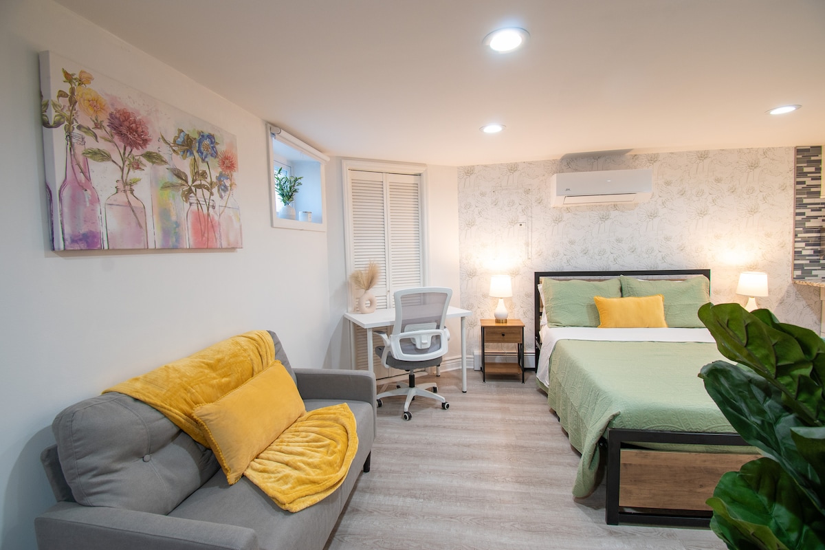 Geniş, günəş işığı saçan qonaq otağımızda ucsuz-bucaqsız Riverdeyl məhəlləsində dəbdəbəni təcrübədən keçirin. Burada gözəl dizayn edilmiş ayrıca hamam otağı və tam təchiz olunmuş mətbəx var. Kraliça ölçülü çarpayı və xüsusi iş sahəsi mükəmməl şəhər istirahətinizdə dincəlmək və dincəlmək üçün ideal şərait yaradır. Ev füsunkar Holland Koloniyası evidir; süita ikinci mərtəbədə gəzinti pilləkəni ilə xüsusi girişi var.
