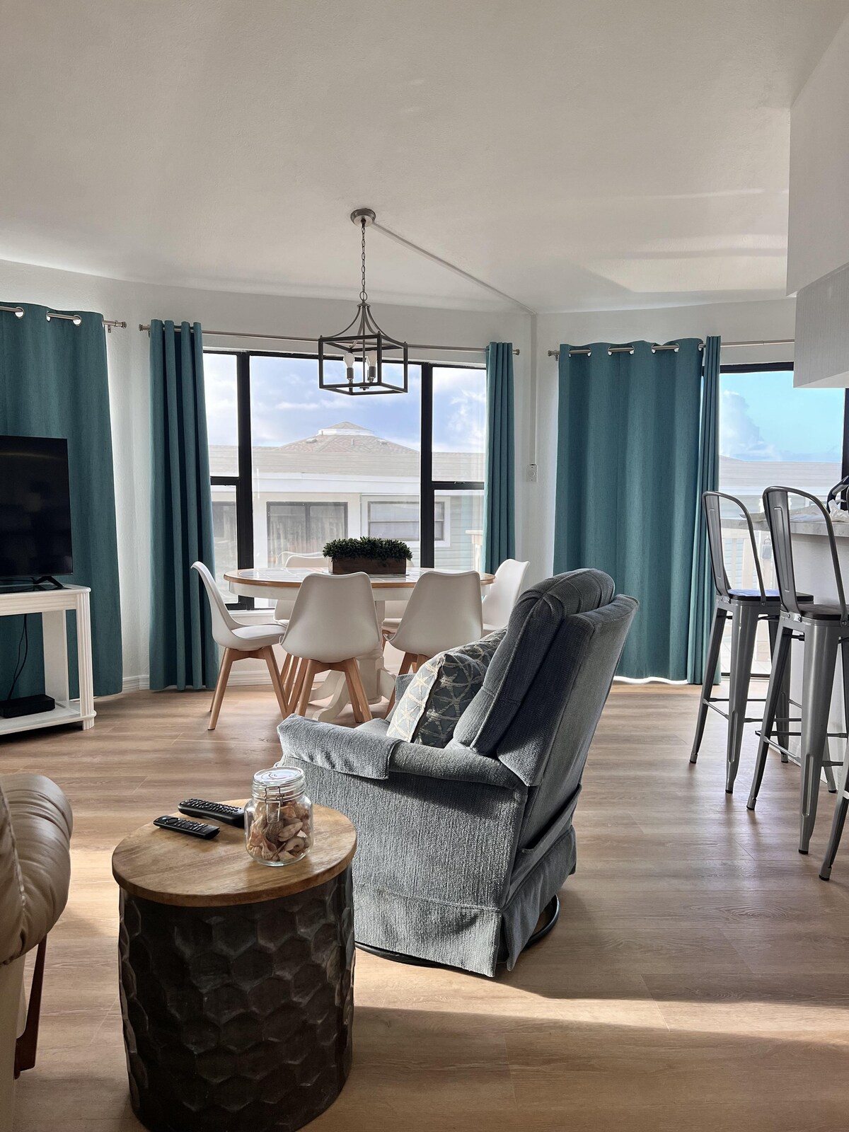 Rahat, füsunkar YENİ TƏMİR EDİLMİŞ "çimərliyə yaxın" qurğu xüsusi olaraq studiya kimi düşündüyündən daha açıq və daha geniş hiss etmək üçün hazırlanıb. Fərdi taxta tavan sizə içəridə çox qəribə təsir bağışlayır. Tam retro mavi soyuducu, mikrodalğalı soba, böyük toster sobası və yemək ehtiyaclarınız üçün elektrik tavaları olan Səmərəli Mətbəx. Yeni Kraliça çarpayısı/ işıqları, yumşaq döşəkağılar və tüklü yastıqlar. Ağıllı TV w/kabeli və Wi-Fi. Soyuducu ilə birlikdə çimərlik stulları, çətir və çimərlik dəsmalları daxildir.