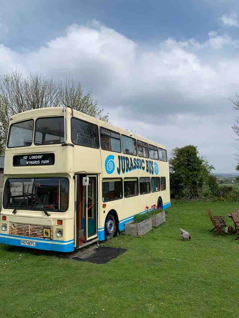 4 böyük və 2 uşaq üçün rahat yaşayış yeri təmin etmək məqsədilə məktəb avtobusundan zövqlə dəyişdirilmiş Durdle Qapısı və Lulworth Körfəzi yaxınlığında ikimərtəbəli avtobusda qonaqlamaq üçün unikal təcrübə Avtobus açıq kənd yerində gözəl mənzərələr təklif edən köhnə daxmanın zirvəsində yerləşir. Durdle Door, Lulworth cove, dünya şöhrətli Tank Muzeyi və Meymun Dünyasına yaxın yerdə yerləşir Qərbə getmək Weymouth və Abbotsbury, şərq Korfe Castle və Swanage, qəribə kəndlərə daxili