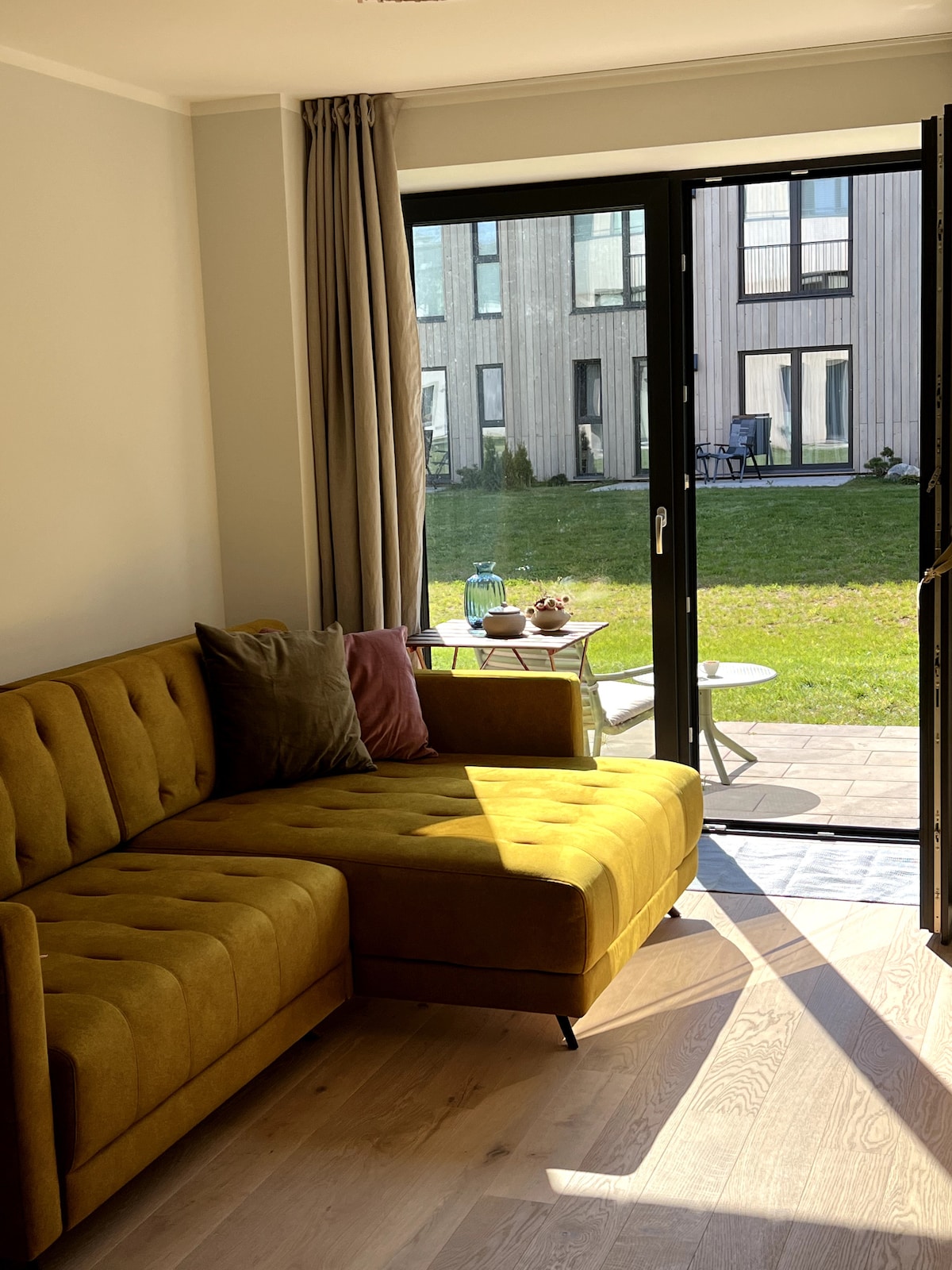 Dənizdən 200 m məsafədə - Yurmalada geniş 4 otaqlı mənzil! Majoridə premium səviyyəli 80 m² mənzil icarəyə verilir. 3 yataq otağı, mətbəxi olan geniş qonaq otağı və 2 hamam otağı. Tam təchiz edilmiş və təchiz olunmuş – rahat qonaqlama üçün lazım olan hər şey. Bağça, idman meydançası/idman meydançası və açıq havada terrası olan təhlükəsiz, qapalı sahə. Jomas küçəsinə 3 dəqiqəlik, Dzintari Konsert Zalına isə 13 dəqiqəlik məsafədədir. Uşaq beşiyi sorğuya əsasən mövcuddur. Dəniz kənarında rahat ailəvi istirahət üçün mükəmməldir!