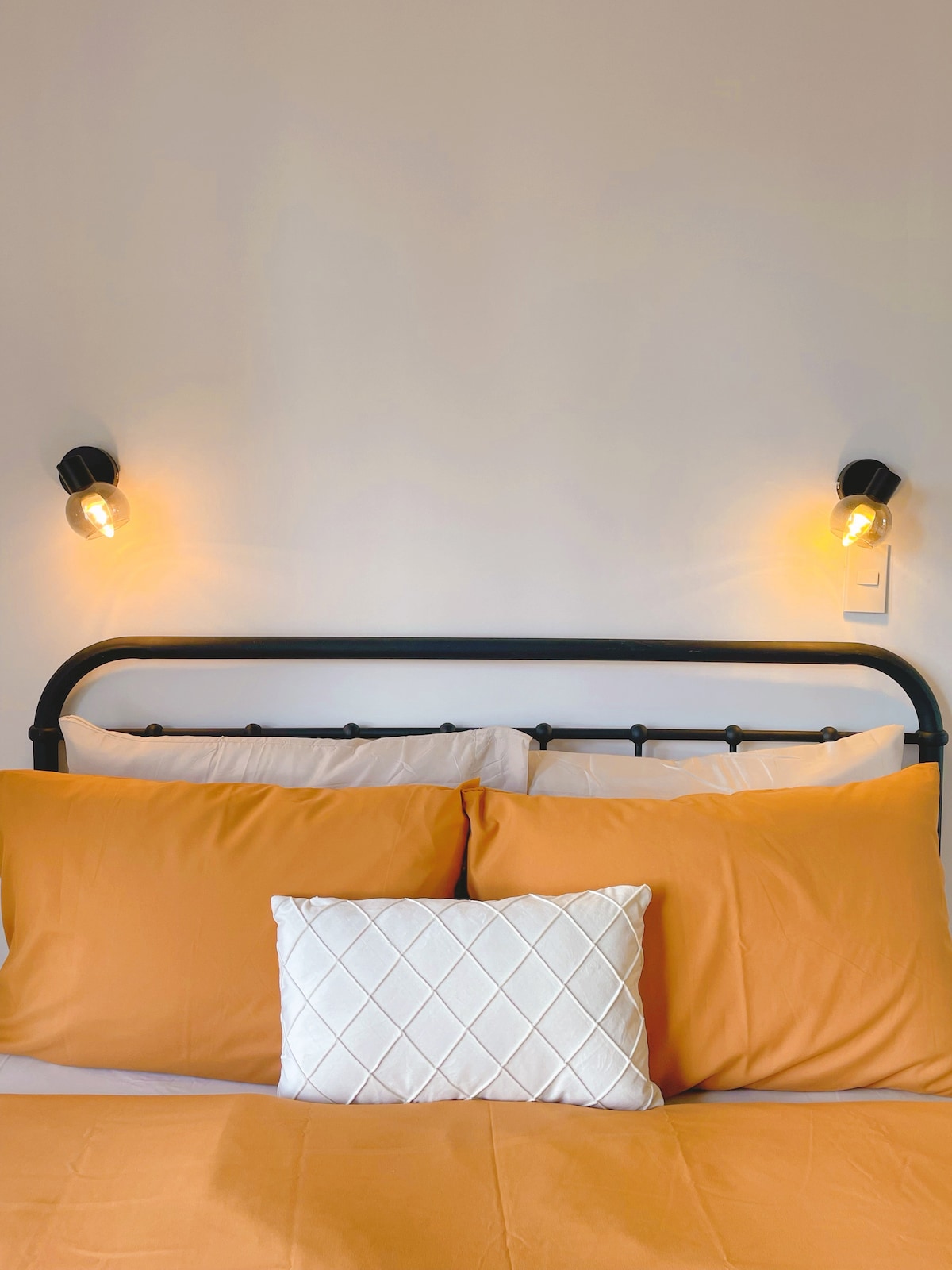 Perched on the 16th floor, this cozy studio offers sweeping views of Bacolod’s skyline and sea. Wake to golden light streaming through the window, unwind under a chandelier of stars, and rest in soft linens. A warm wood desk invites work or journaling. Perfect for solo travelers or couples seeking serenity above the city—compact, calm, and unforgettable.