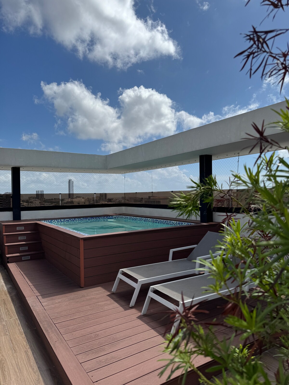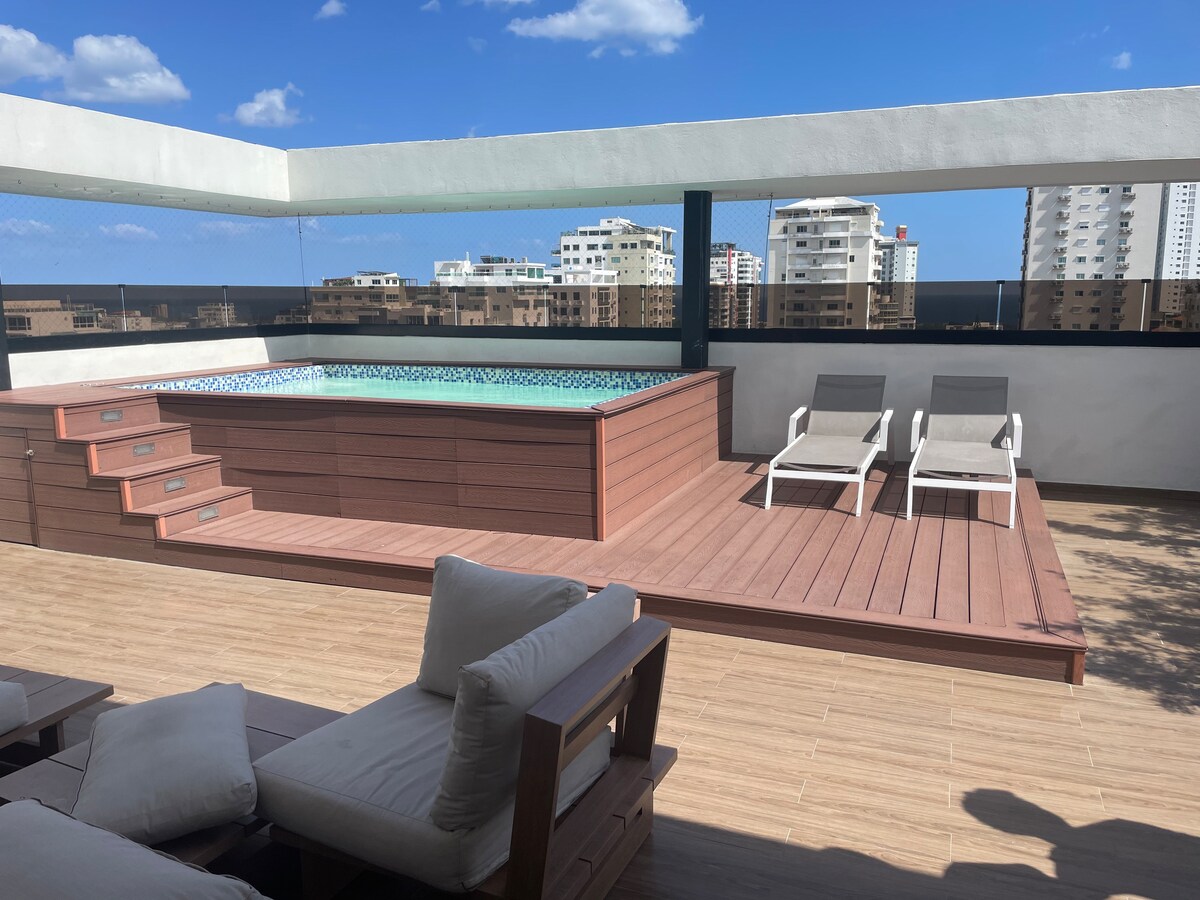 Elevate your stay in this stylish top-floor apartment at Plaza Paseo 27, Santo Domingo. Enjoy modern design and comfortable living spaces, along with a private balcony with open skyline views. Perfectly located for dining, shopping, and exploring the city at its best!