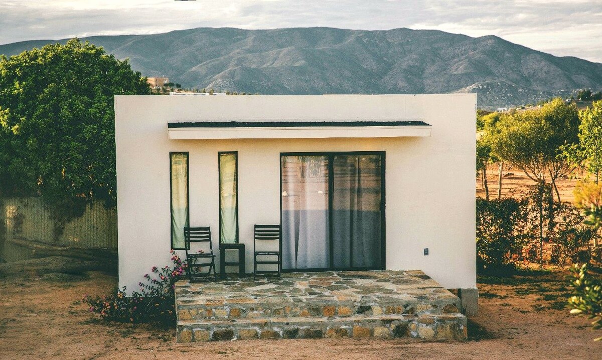Disfruta con tu pareja, amigos y mascota este confortable alojamiento dentro de una privada totalmente cercada, donde la tranquilidad se respira. Podrás disponer de una terraza frontal con asador, fogatero. A solo 1 minuto podrás recorrer caminos por la montaña (bicicleta o hiking), a 15 minutos del centro, y del inicio de la famosa ruta del vino Valle de Guadalupe. Se encuentra dentro de una privada con portón eléctrico para su conveniencia. Estacionamiento gratuito. Especial para mascotas!