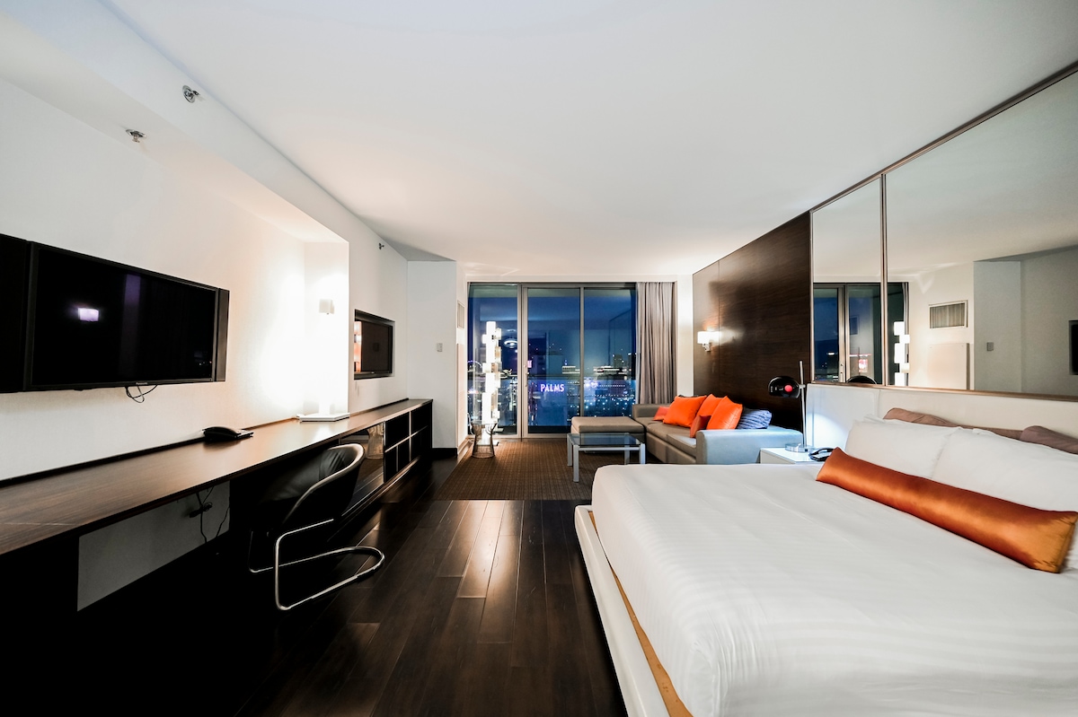 RESORT HAQQI YOXDUR. TƏMİZLİK HAQQI YOXDUR. Palms Place Hotel and Spa özünü oteldən daha çox ev kimi hiss edir. Kazinoların dayanmayan fəaliyyətindən silindi. Palms Place-də yaşayan dörd almaz lüks studiya müasir dəbdəbənin nə olduğunu öyrənir. Qonaq otağı, piştaxta hündürlüyündə yemək masası, balaca mətbəxi olan 615 kv metrlik qonaq sahəsi. Zolaq, Şəhər və Dağ mənzərəli tam ölçülü balkon verandası bütün qonaqlar üçün əlçatandır. Palmalar çıxış zamanı silinmiş 100 $/gecə kartını saxlayır