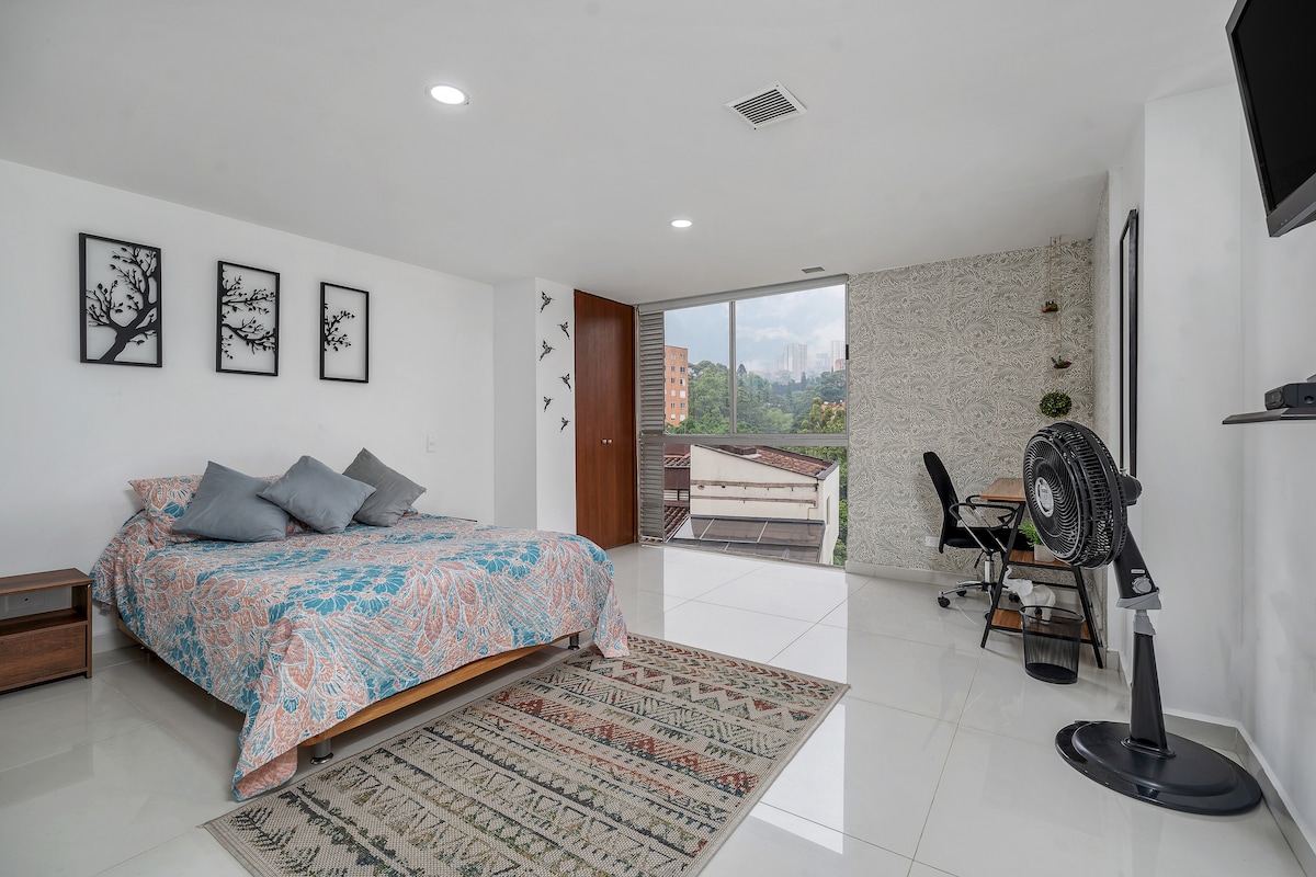 Şəhər mənzərəsi açılan özəl cakuzi, king ölçülü çarpayı, kondisioner və şəhərin nəfəs kəsici mənzərələri ilə bu eksklüziv studiyadan Medellinə tamaşa edin. Zəriflik, rahatlıq və canlı gecə həyatı üçün mükəmməl istirahət yeridir. El Poblado-da, Provenzanın restoranlarından, dam barlarından, kafelərindən və qalereyalarından bir neçə addımlıq məsafədə, Parque Lleras gecə həyatından bir neçə dəqiqəlik məsafədə yerləşir. Netflix, yüksək sürətli Wi-Fi iş sahəsi, mətbəx, paltaryuyan maşın/quruducu, idman zalı, sauna, hovuz və yerində barlar, restoranlar və qalereya ilə 54 düymlük smart TV-dən zövq alın.
