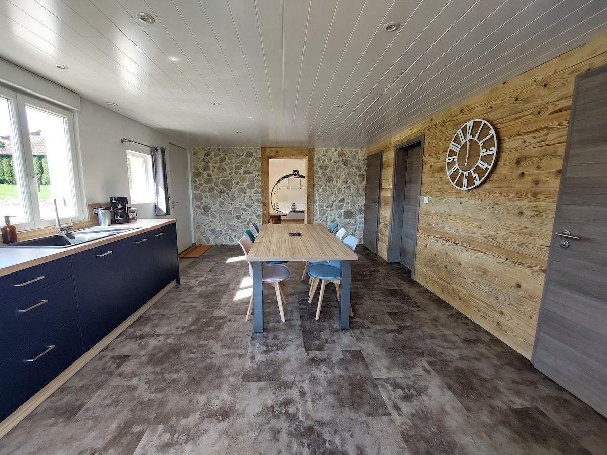 Doubs şöbəsində, kiçik Rantechaux kəndində yerləşən mənzil. Besançon, (20 dəqiqə) Pontarlierə və Valdahona 5 dəqiqə (30 dəqiqə) yaxın (30 dəqiqə). Bu mənzil ailələr və ya dost qrupları üçün qonaqlama üçün idealdır. Bir həftəlik işçi üçün. - Mətbəx: Qabyuyan maşın, qəhvə maşını, toster, raclette, crêpière, plancha... Vanna otağı: Duş , çanaq və ayrıca tualet - Qonaq otağı:televizor, divan çarpayı - Döşəkağı-dəsmallı yataq otaqları daxildir - Böyük açıq hava məkanı