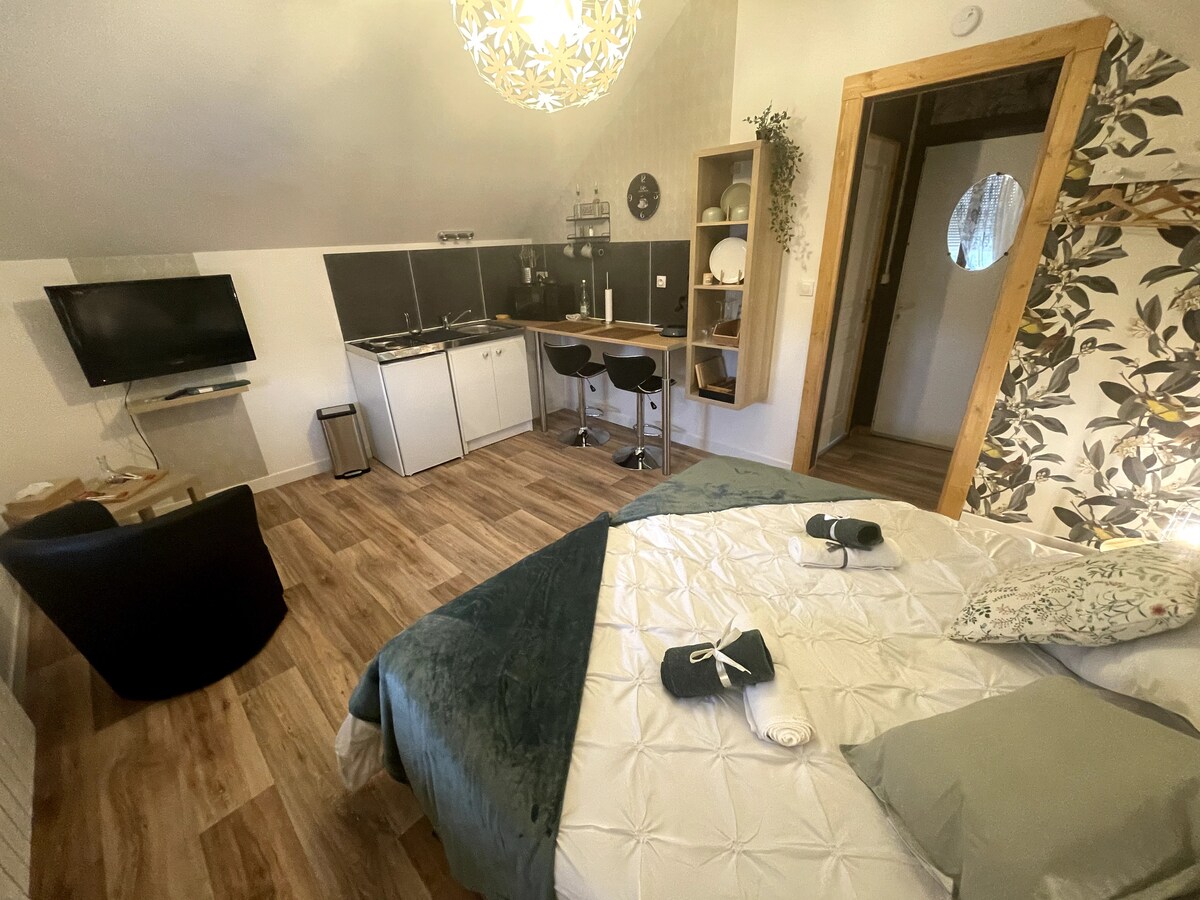 Ayrıca saunası olan ölkə 🍀 gəzintisi - istirahətə zəmanət verilir 🧘 Yaşıl fasilə axtarırsınız? Təbiət və rahatlıq arasında yerləşən köhnə fermanın mərkəzində yerləşən bu müstəqil kokarda rahat qonaqlama üçün lazım olan hər şey var. ☺️ Əmlakın, gölməçənin, petank meydançasının böyük yerlərindən zövq alın və kəndin ətrafındakı gəzinti yollarını kəşf edin. 🚶 İki və ya tək nəfərlik rahat həftəsonu üçün mükəmməldir. 👋