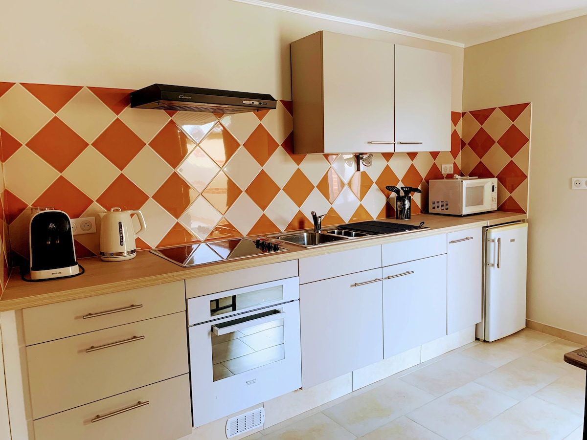 Bütün komfortları olan 64 m² gite . 4/5 nəfər üçün əladır. Mebellə təchiz edilmiş mətbəx (soyuducu/dondurucu, filtr qəhvə maşını, Dolce Gusto, soba, mikrodalğalı soba, LV) . 1 yataq otağı 1 çarpayı 160x200, duş kabinəsi olan hamam otağı 160x90. Ayrıca tualet. 1 yataq otağının üstü (2 çarpayı 90x200). 1 yataq otağı 1 çarpayı 90x190. Giriş zamanı edilən çarpayılar. Həyətdə 4 nəqliyyat vasitəsi üçün parkinq sahəsi. Ailə və ya işgüzar səfərləriniz üçün ideal olan arxa tərəfdəki divarlı bağ (150m2).