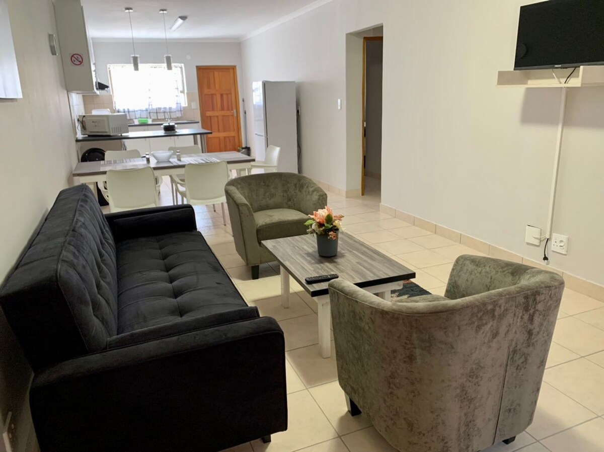 Bu geniş 2 yataq otağı olan özünə məxsus iaşə mənzili tam təchiz olunub və rahat qonaqlama təmin etmək üçün lazım olan hər şey var. Tam DStv , Netflix və Wifi. Barbekü qurğuları olan verandadan kənarda.