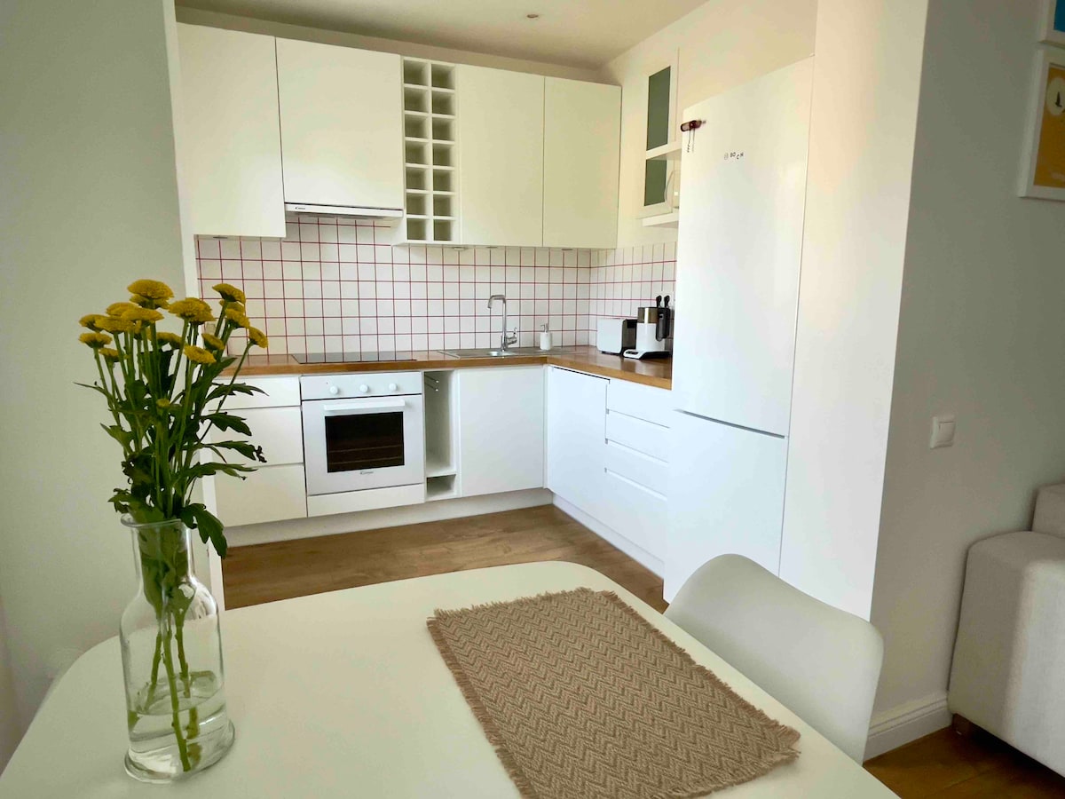 Mənzil sizə lazım olan hər şeyin olduğu geniş tərtibata malikdir - Mətbəxdə yemək bişirmək və nahar üçün texnika, kapsul qəhvə maşını + qəhvə kapsulları, elektrik çaydan, mikrodalğalı soba. Qonaq otağında qatlanan divan çarpayı, 55" televizor və internet. Yataq otağı qarderobu və qaralma pərdələri olan ayrıca otaqdır. Mənzil paltaryuyan maşın, paltar qurutma rəfi, saç feni və tozsoran ilə təchiz olunub Mənzil sakit bölmədə yerləşir, ticarət mərkəzinə, kinoteatra, ərzaq mağazalarına piyada məsafədə yerləşir Evin qarşısında pulsuz parkinq və kamera nəzarəti Avtovağzal 1,5 km məsafədə