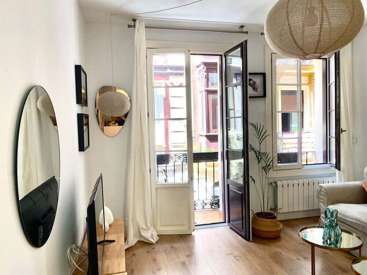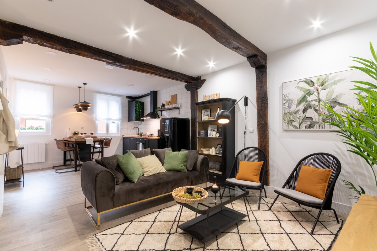 Köhnə Bilbao şəhərinin emblematik 7 küçəsindən birində yerləşən rahat mənzil. 150 ildən çox tarixi olan bina 1867-ci ildə inşa edilib. Bütün Kasko Viejo və Bilbaoda ən füsunkar və yerli alış-veriş küçələrindən birində yerləşən keyfiyyətli çörək zavodu, veqan kafesi, vintaj kitab mağazaları, yerli geyim mağazaları və daha çoxu. Tramvay dayanacağından, De Santyaqo Kafedral Kilsəsindən və Ribera Bazarından bir neçə metr məsafədə və metro dayanacağından təxminən 3 dəqiqəlik məsafədə.