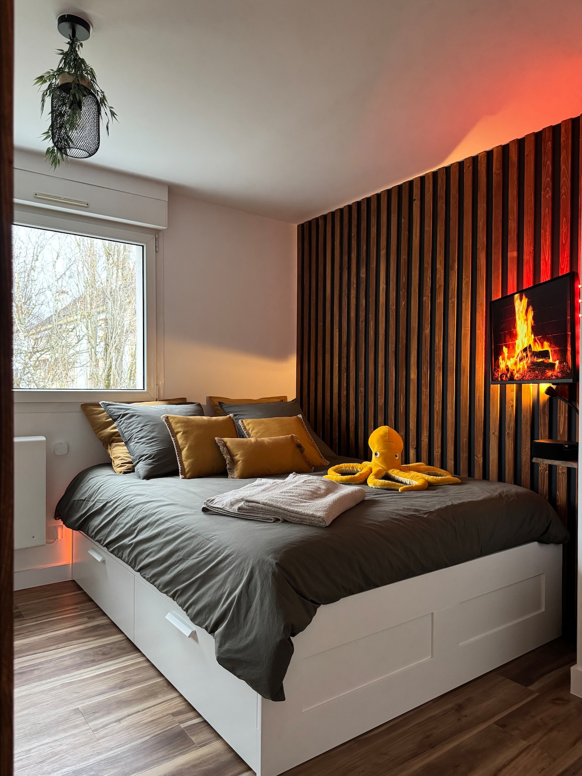 Sent Nazerinin mərkəzində yerləşən zərif və mərkəzi T2-dən zövq alın. Yenilənmiş, keyfiyyətli yataq dəsti, duş, Tassimo ilə tam təchiz olunmuş mətbəx Sakit yaşayış yerinin qaldırılmış birinci mərtəbəsində yerləşən avtobusların, velosiped yollarının, Saint-Nazaire tikinti layihələrinin və s. yaxınlığını qiymətləndirəcəksiniz... Dəniz sahili 5 dəqiqəlik məsafədədir, çünki məşhur Komando Meydanıdır. Biz təmin edirik: döşəkağılar, dəsmallar, dəsmallar, hamam döşəyi və mətbəx dəsmalı.