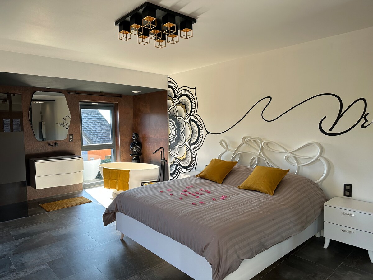 Large, quiet and bright flat, situated in the middle of nature (but very easy to reach by car). Completely renovated and integrated in a century-old house. Spacious kitchen open to the living room. High-quality design bathroom with infrared-cabine. Large, park-like outdoor area offering both sunny and shady spots to relax. Isolated location, unobstructed view. Parking spaces, bicycle storage and barbecue facilities. Ideal for nature lovers and those who want to become one.