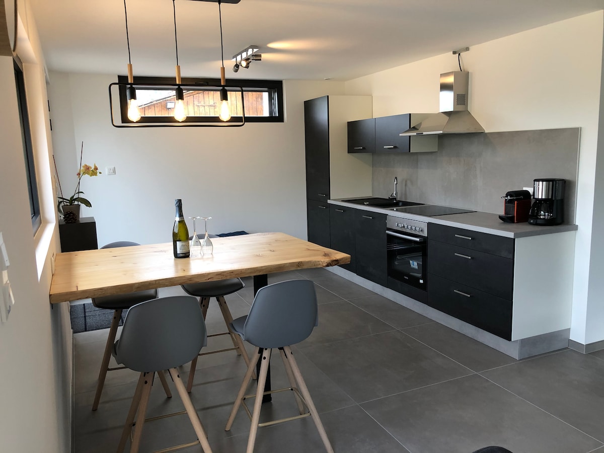 Müasir kondisionerli kottec, bütün imkanlara yaxın, çox gözəl dağ dağ evinin bağ səviyyəsində. Xüsusi giriş, parkinq, + bütün il boyu açıq olan rahat CAKUZİ ərazisinə və may-sentyabr aylarında açıq olan MINI HOVUZA giriş. Kottecin tutumu: 2 nəfər mövqe: Munster Vadisində kənd, Alsatian üzüm bağına yaxın və KOLMAR/STRASBURQ/Mulhaus kimi turistik şəhərlər, bir neçə dağ gölü, xizək yamacları, yürüyüş yolları