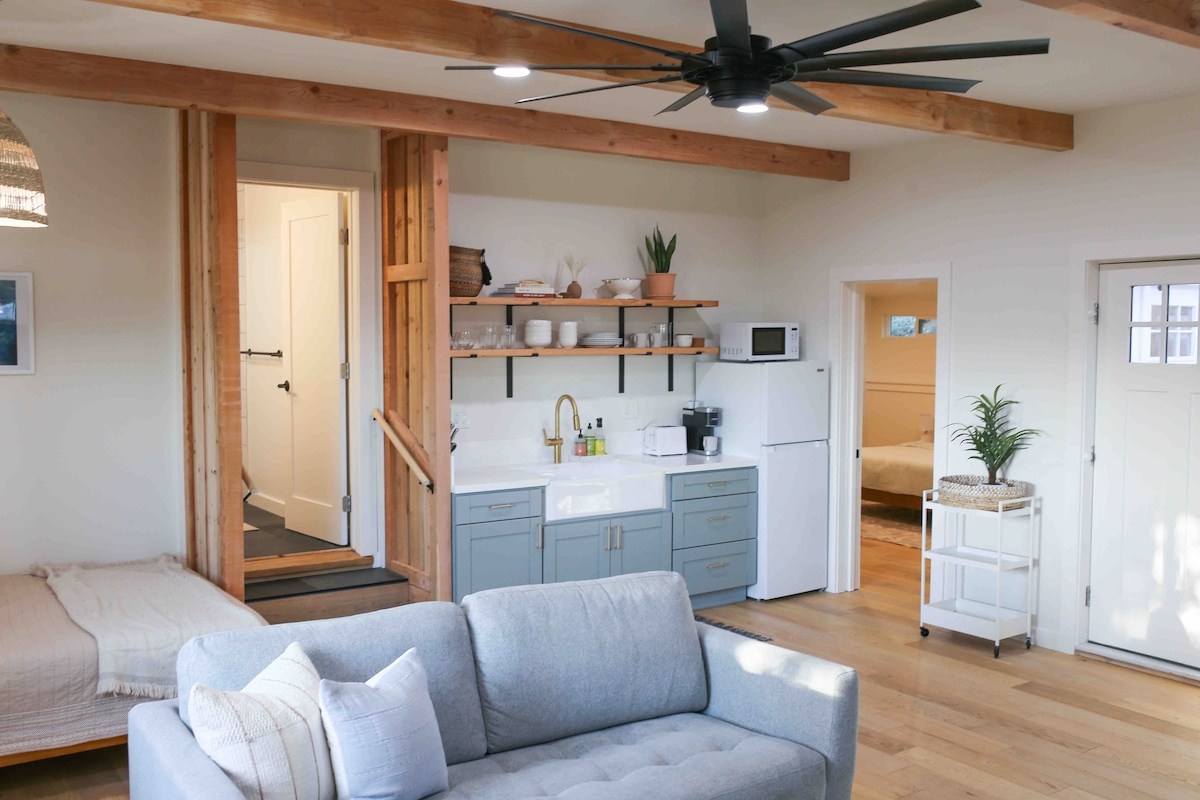 Gözəl qonaqlama üçün ehtiyacınız olan hər şeyin olduğu möhtəşəm ayrıca, əlavə qonaq studiyası. Plyus kraliça ölçülü çarpayı, xırtıldayan lüks döşəkağılar, öz yayım xidmətlərinizə daxil ola biləcəyiniz roku TV-nin qarşısında dincəlmək üçün ayrıca oturma sahəsi, Bir qədər iş görmək vaxtı gəldikdə super sürətli WiFi ilə rahat xüsusi iş sahəsi, Üstəlik sevimli gün batımı və ya məhəllə yamacı mənzərələrindən zövq almaq üçün rahat çöldə oturma sahəsi. Həmçinin mikrodalğalı soba,soyuducu və qəhvə maşını da daxil edirik.