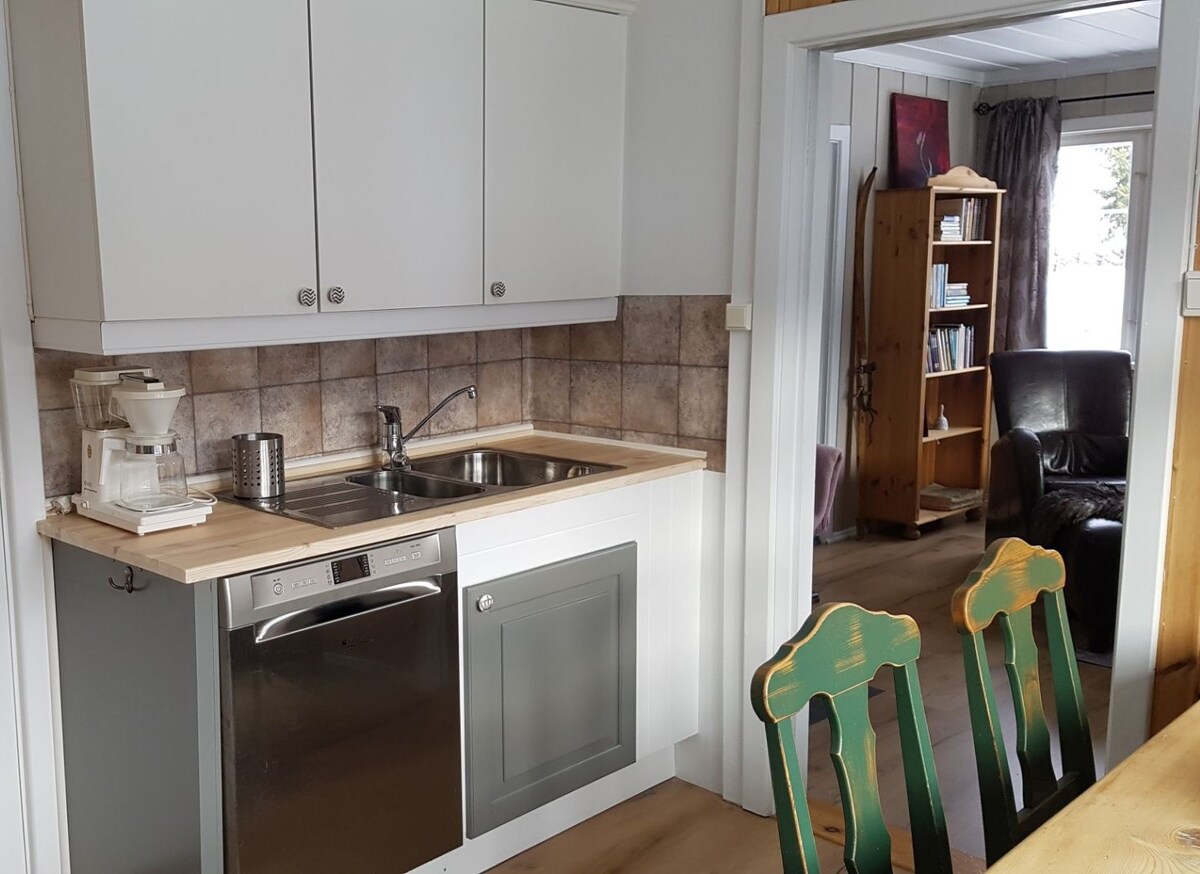 The cottage is located on a small hill, where you can enjoy a wonderful view of the mountains. Modern furnishings with all amenities, such as fully integrated appliances in the kitchen, fire place, and heating in all floors. Wifi and TV. Beitostølen is a walking distance away with all its offers and opportunities. Great hiking terrain and in the immediate vicinity of the cottage. Pets are allowed.