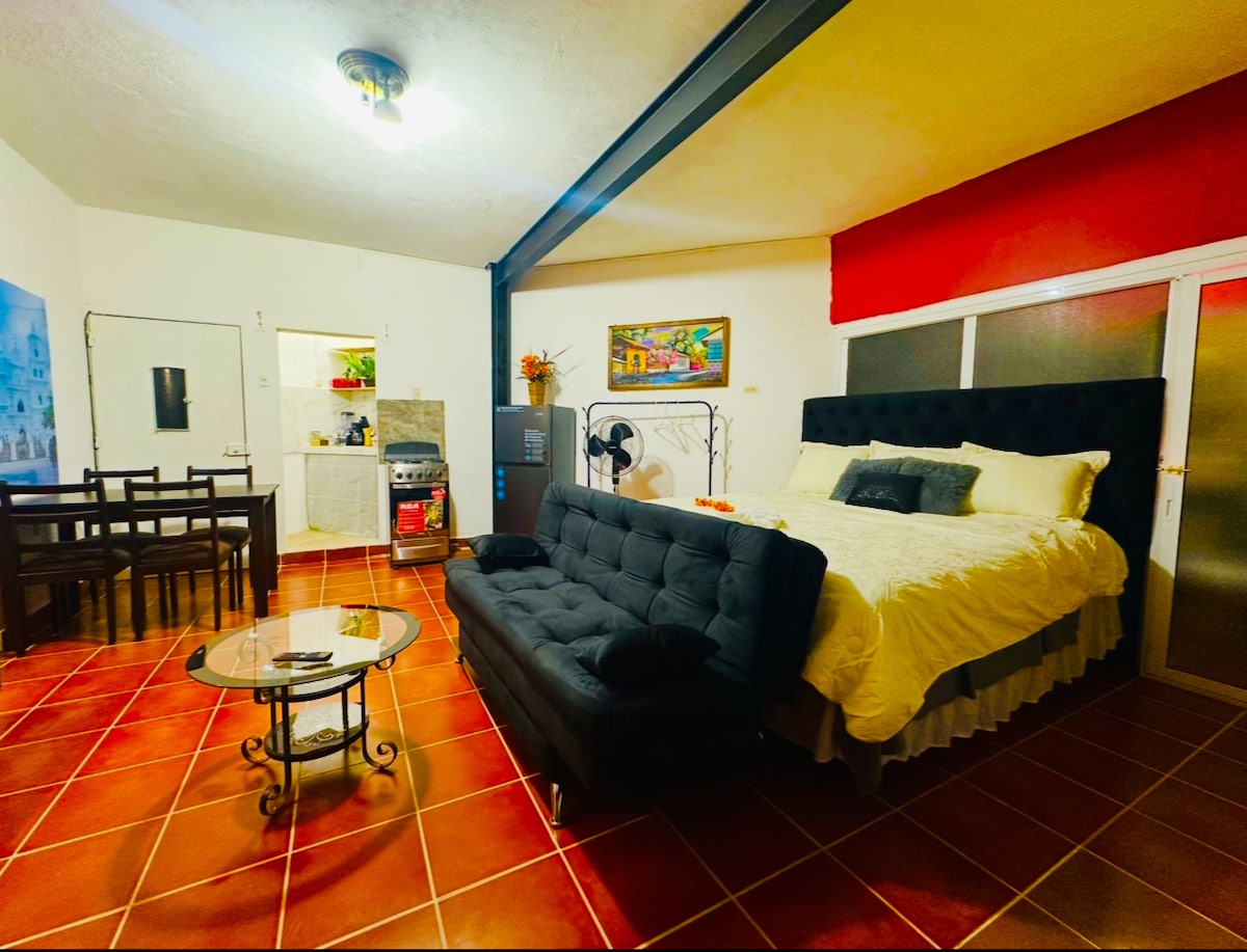 Desconecta de tus preocupaciones en este espacio a 3 minutos de la Basílica de Esquipulas a sido diseñado para que tengas todo lo indispensable y una bonita experiencia y puedas sentirte como en casa tiene una cama King y un sofá cama para dos personas para que tu descanso sea placentero