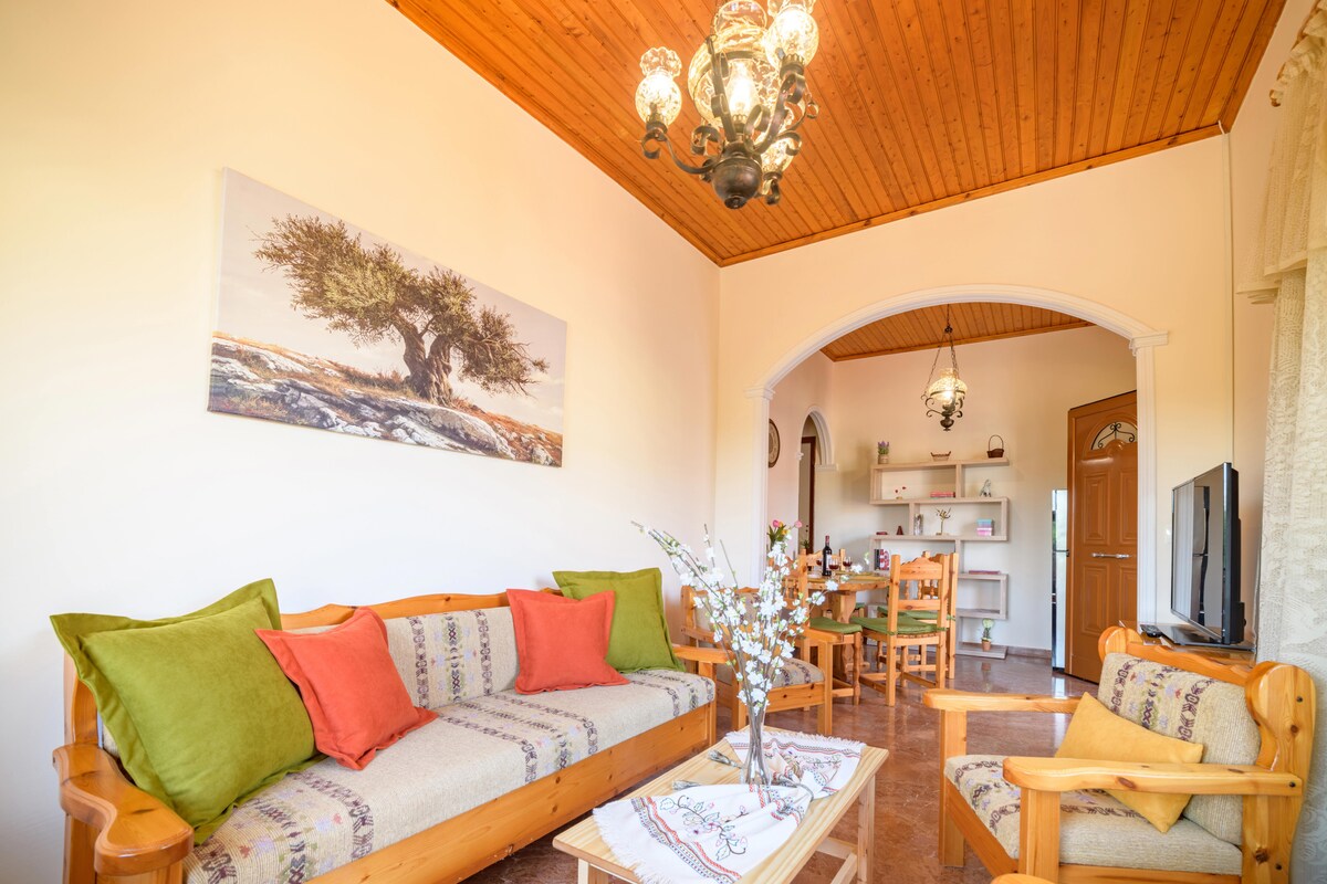 Our apartment is ready to give you special moments on your holidays in comfort and safety. The apartment is a maisonette with a living room, kitchen and w/c on the 1st floor and on the 2nd floor it has 2 large bedrooms, a bathroom and storage room for the washing machine. It is only 4 kilometers from the airport 5 kilometres from the city center. Right next door you will find a supermarket, a bakery and a bus stop. From the apartment you can easily go to the beautiful beaches of our island.