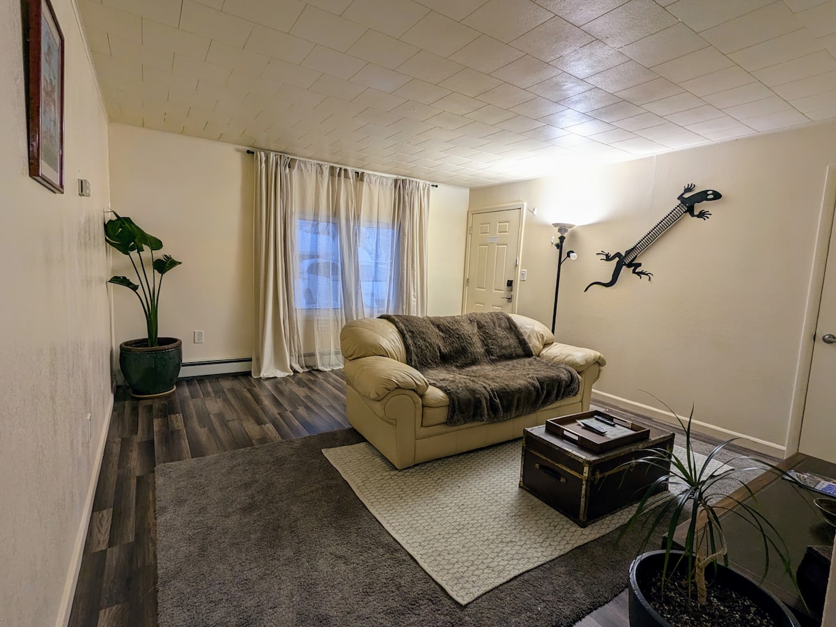 İstənilən qonaqlama müddəti üçün təchiz edilmiş bu müasir 2 yataq otaqlı mənzildən zövq alın! Alyaskada bişmiş tökülmüş qəhvə ilə oyanın. 55 düymlük televizorda (Netflix və Disney+ təmin edilir) sevdiyiniz şouları izləyin. Qaralmış pərdələri olan rahat yataq otaqlarında yaxşı yatın. Paltaryuyan və quruducu ilə daha yüngül yığa və daha uzunmüddətli qonaqlamalardan zövq ala bilərsiniz. Mərkəzdə yerləşən bu məkan əksər görməli yerlərdən və restoranlardan 10 dəqiqədən az məsafədədir. Sizə ev sahibliyi etməyi səbirsizliklə gözləyirik.