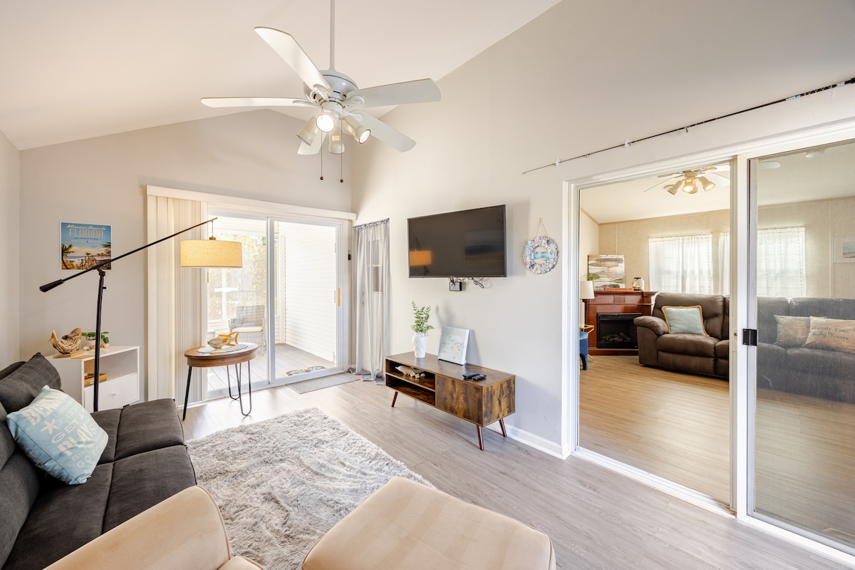 Yay xüsusi qiymətləndirməsi | Estero Körfəzində Sun Retreats gözəl icma hovuzu, oyun meydançası, turşubol və idman zalı ilə zəngindir. Gözəl çimərliklərə və məşhur Miromar Outlet Mall-a yaxındır. Geniş, eybəcər park modelimi bəyənəcəksiniz! Böyük Florida Otağı əlavə yataq yerləri əlavə edir. Döşəkağı-dəsmal, qab-qacaq, çimərlik avadanlığı təmin edilib. Soyuq A/C. Sürətli İnternet. Əvvəlcədən təsdiqləmə ilə yaxşı davranan kiçik itlər qəbulolunandır.