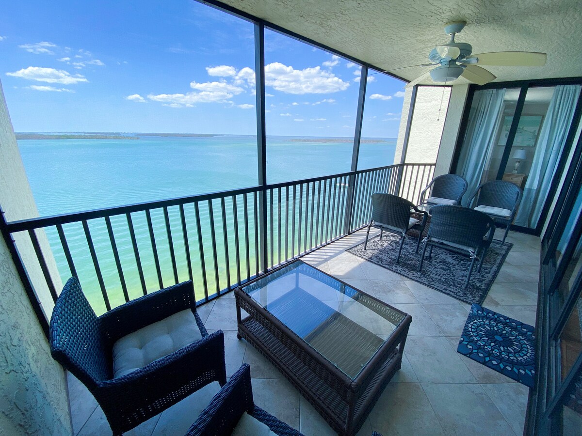Rahat motivi olan üst mərtəbədəki bu gözəl kondominiumlu talvardan gözəl mənzərələrdən zövq alın. 3 saat rahat yatın. Əmlakda Flippers Restoranı və Tiki Bar, eləcə də saytda və məşq qurğusu var! Qonaq otağından və yataq otağından sürüşən qapılar Meksika körfəzi, Estero Körfəzi və Lovers Key Dövlət Park Ərazisinin panoramik mənzərəsi olan geniş laneyə açılır. Hər pəncərədən mənzərələr!
