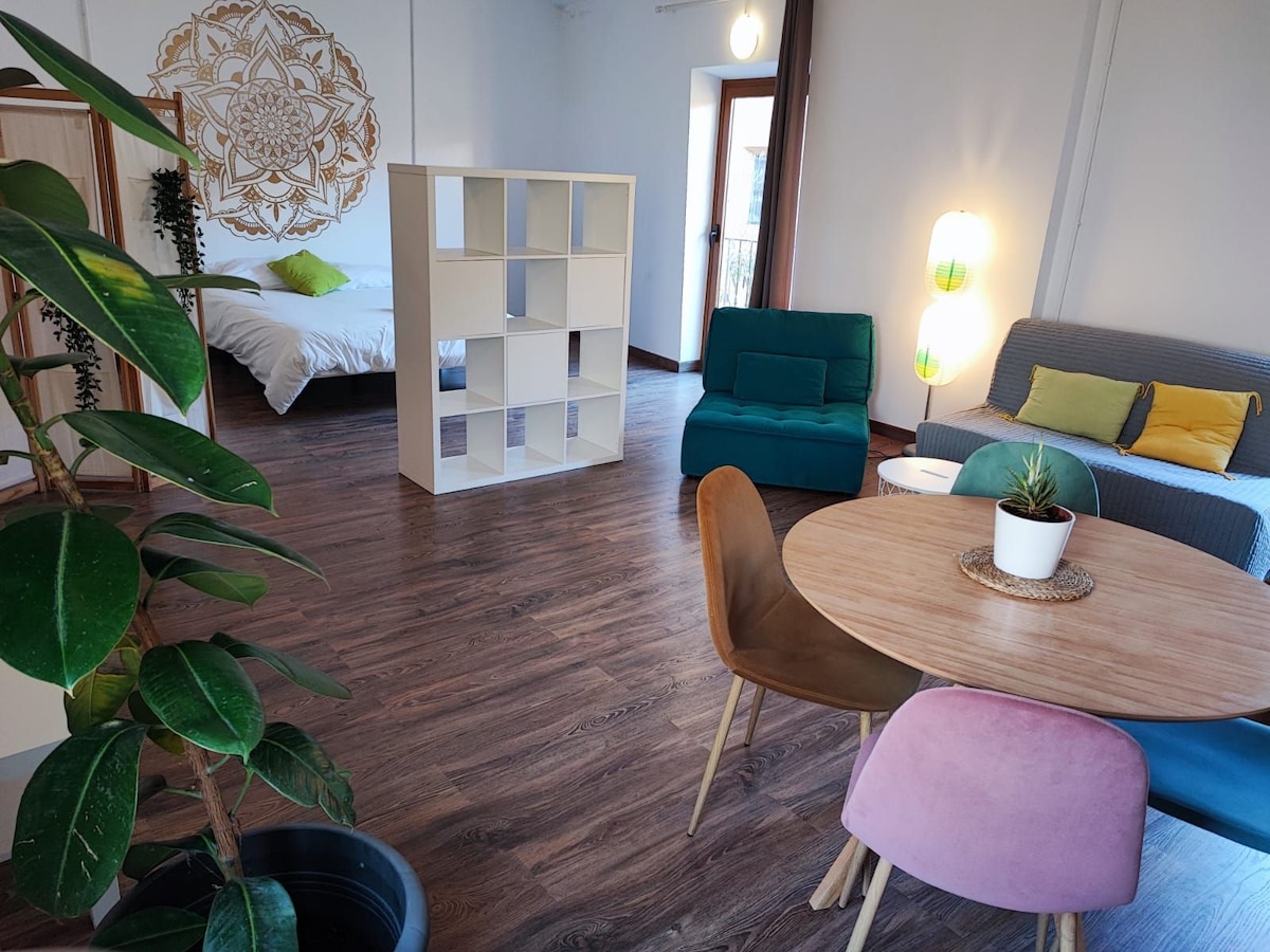Bu sakit və mərkəzi yaşayış yerinin sadəliyindən zövq alın. Mətbəxi, hamam otağı və kiçik terrası olan diafanlı loft. Loft Xàtiva ikonik və monumental şəhərinin mərkəzində gözəl reabilitasiya edilmiş evin (köhnə saray) ikinci mərtəbəsində yerləşir.